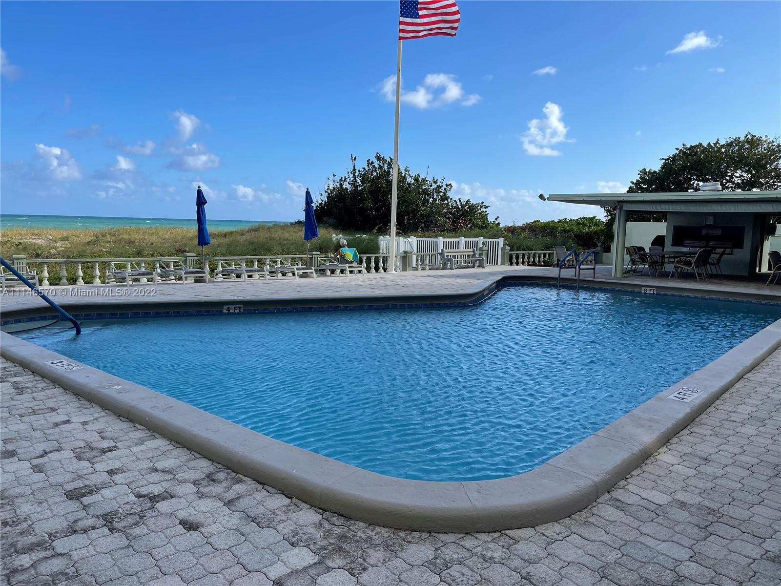 Directly on the sand in Lauderdale by the Sea! Nice South-East exposure ground floor unit. Walk to lovely patio, pool and beach. Spacious 2 bed/2bath. Enjoy stunning ocean and garden views from large porch . Relax at the heated pool with an oceanfront pavilion and BBQ grills. Plenty of parking available. Covered parking and a very large exterior storage space. No age restriction. Close to shopping and fabulous Restaurants.