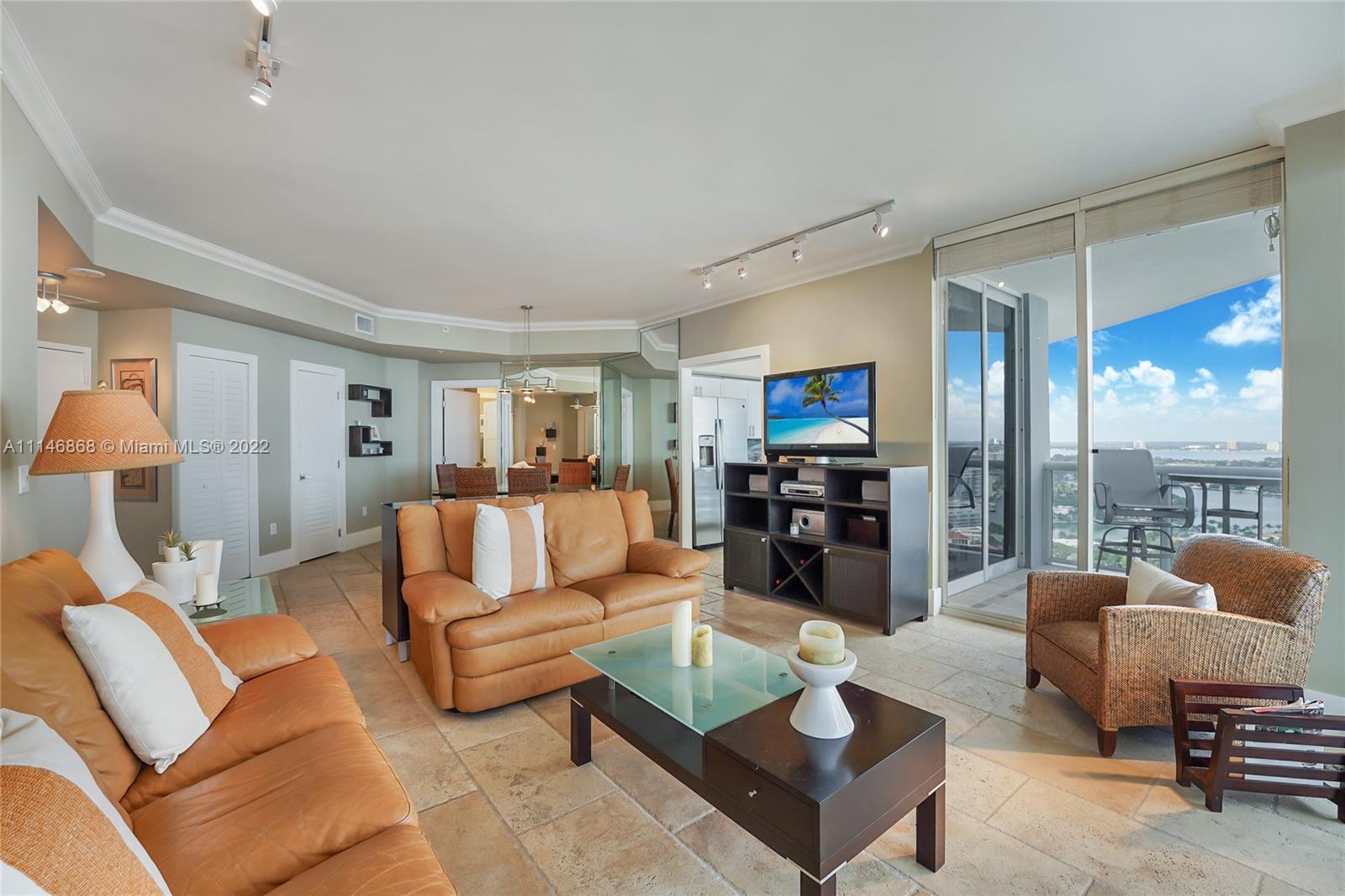 Choose to live in spectacular PH8 at La Gorce Palace. No worries about new construction plans obstructing your view. Take in the sunsets and sunrises from the 34th floor. Views of ocean and intracoastal. Completely renovated unit with limestone floors, 10 foot ceilings, new cabinets and doors, new appliances and much more. Full service building, social room, bbq area, heated pool, gym and more. Building undergoing major renovation. Buyer can buy unit furnished or not. Seller will pay all remainder assessments. Bring your bathing suit. Owner motivated! Won’t last!