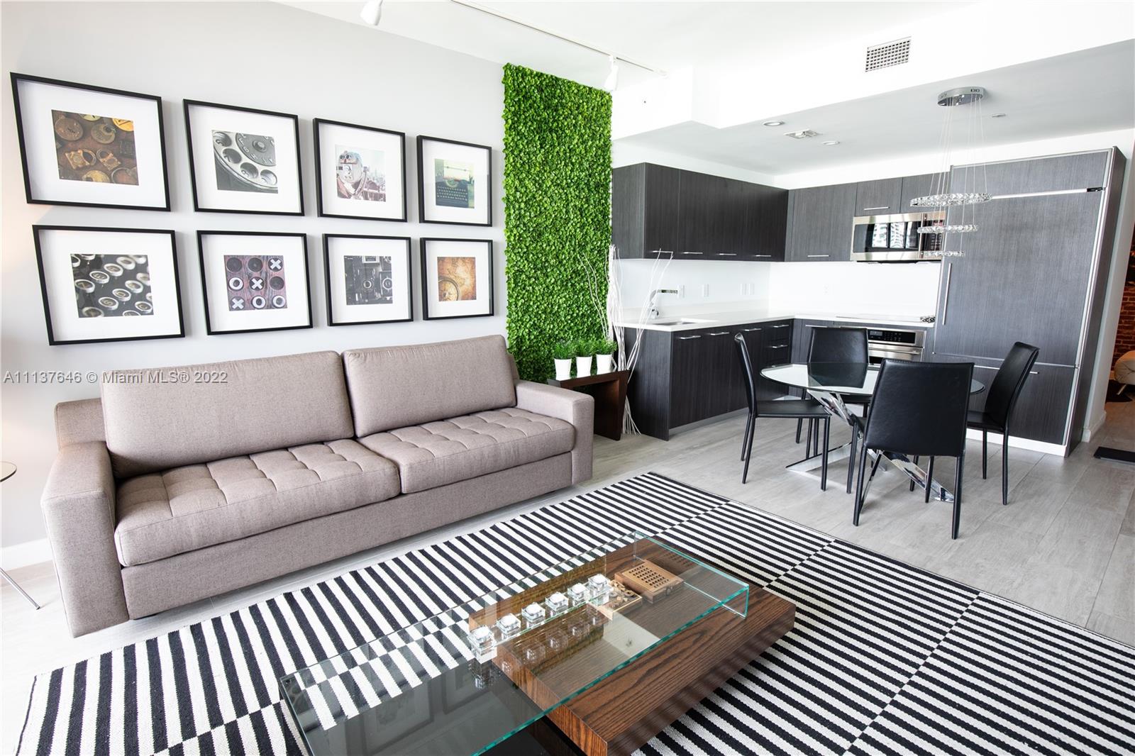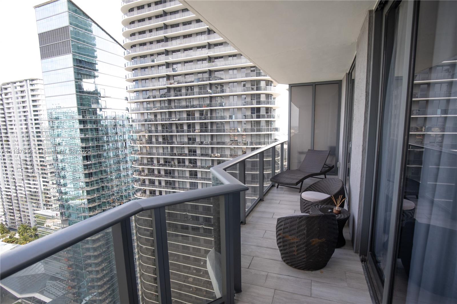Turn-key unit beautifully designed and centrally located. Enjoy spectacular city views overlooking the vibrant Brickell City center and Brickell skyline. This comfortable one-bedroom and 1.5 bathrooms also has a cozy den designed as an office. Bedroom with walk-in closet and ensuite bathroom with tub with 2 sinks. The modern kitchen with stainless steel appliances opens to the living-dining area. Located close to the elevator in a private corner, this unit is equipped with all you might need, just bring your luggage. 2 valet parking spaces included. Walking distance to shops and fine dining. Amenities include a luxurious rooftop pool, 9th floor terrace & swimming pool and lap pool, business center, front desk attendance 24/7, secure elevator, valet parking and much more…Easy to show!