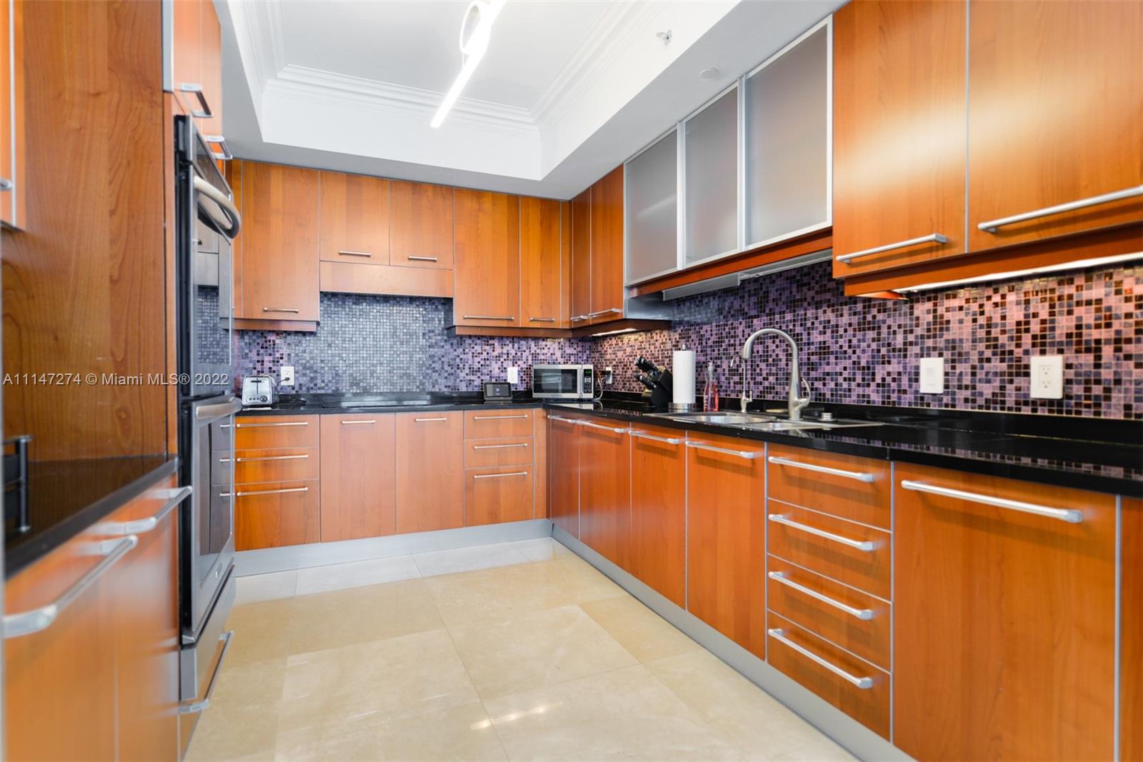Spacious and elegant 3 bed/3 bath, corner unit, with views of the Ocean, City & Intracoastal. This unit Ready for move in, features marble floors, kitchen with granite countertops, Sub Zero, Thermodor, Miele appliances, R.O. filter system, new designer wallpaper, Smart house low voltage, New Automatic shades and Lutton lights. A boutique building with Private entrance from elevator into own foyer. Over 700 sq.ft of two large wrap around terraces. Ocean Palms amenities include: oceanfront beach and pool towel service, billiards room, tennis court, fitness center, sauna, Theater, club room, BBQ, complimentary Valet. Building is located within walking distance of Hollywood Boardwalk. Unit has 2 assigned parking and storage.