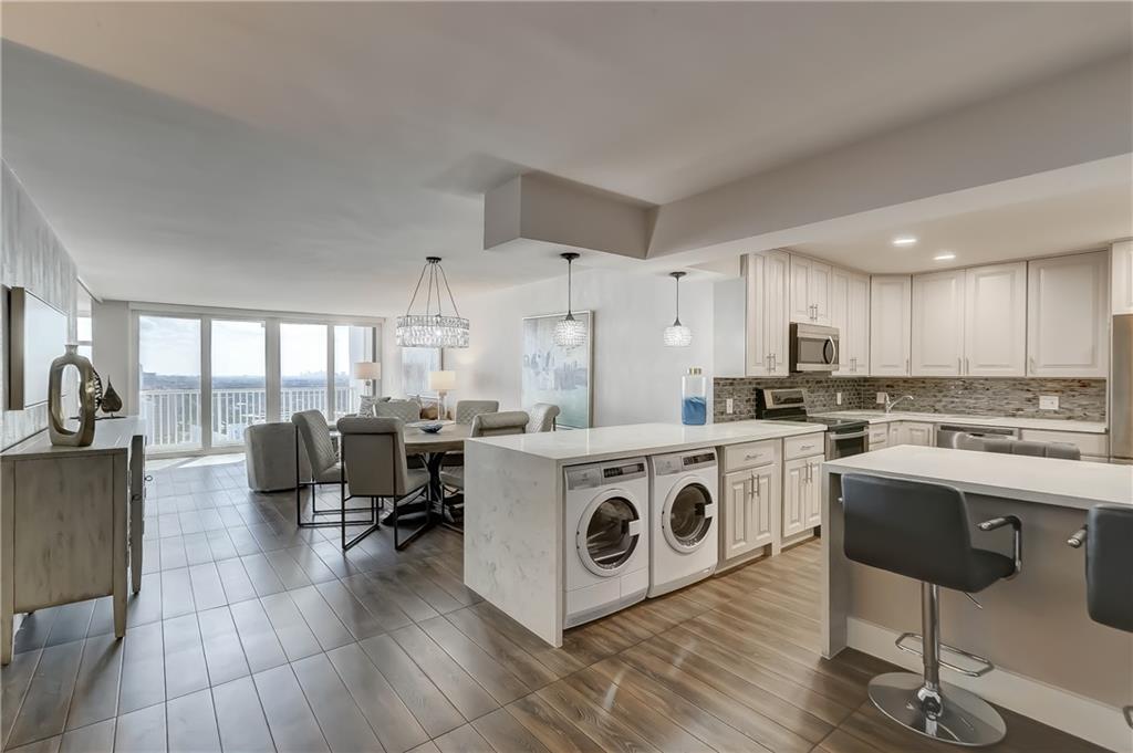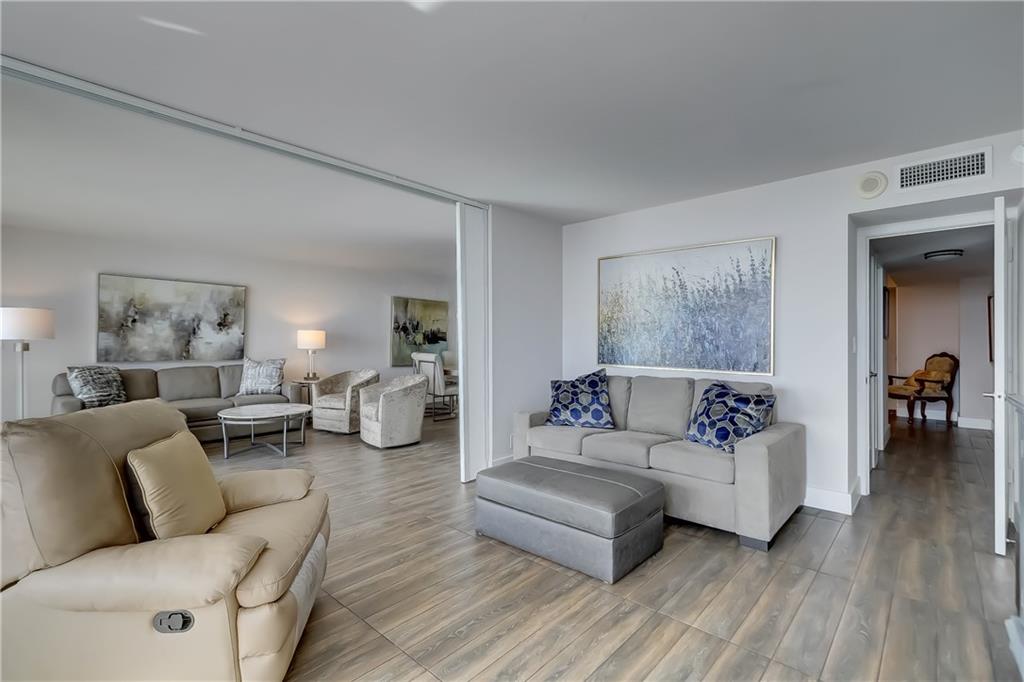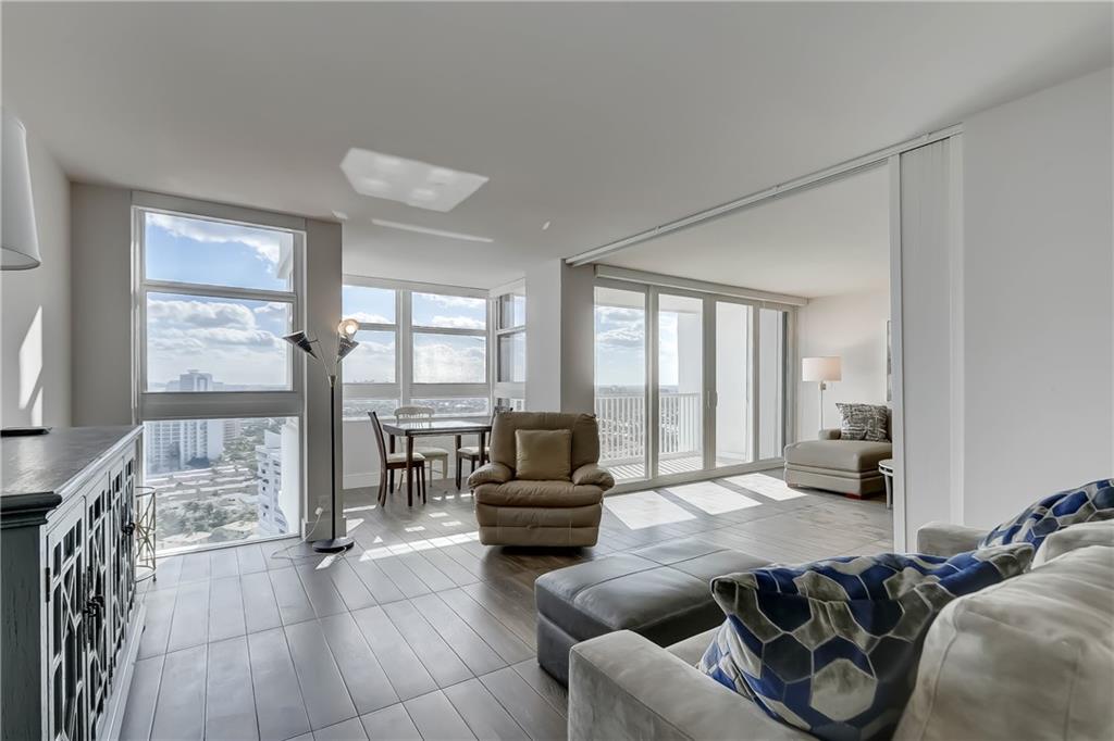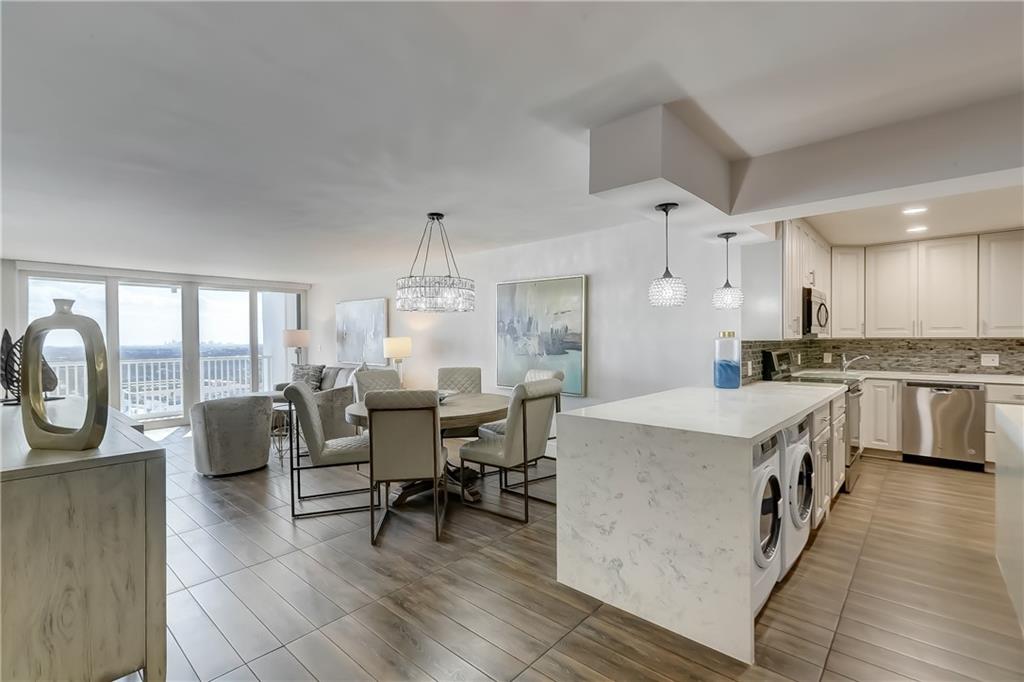 THIS IS READY TO MOVE INTO. GORGEOUS HIGH FLOOR COMPLETELY, AND BEAUTIFULLY REDONE. OPEN LARGE KITCHEN. QUARTZ COUNTER, UPGRADED APPLIANCES, INCLUDING WASHER DRYER. LOTS OF CABINETS, LOTS OF COUNTER SPACE. FABULOUS VIEWS FROM EVERYWHERE. LARGE MASTER BEDROOM HAS DOUBLE FLOOR TO CEILING WINDOWS LOOKING OUT TO OCEAN AND DOWN THE BEACH. BOTH BATHROOMS HAVE BEEN TITALLY REDONE. LARGE FINISHED CLOSETS. EXPENSIVE BLINDS FOR THE WINDOWS AND SLIDING IMPACT GLASS DOORS. NEW SHUTTERS FOR THE BALCONY. BUILDING HAS BEEN UPDATED EXTENSIVELY. THERE IS A NEW GYM RECENTLY FINISHED. 24 HR SECURITY, GARAGE PARKING, SAUNAS, AND SPA LIKE POOL AREA. MOST FURNITURE INCLUDED. BUYER MUST SIGN FIRPTA ADDENDUM.