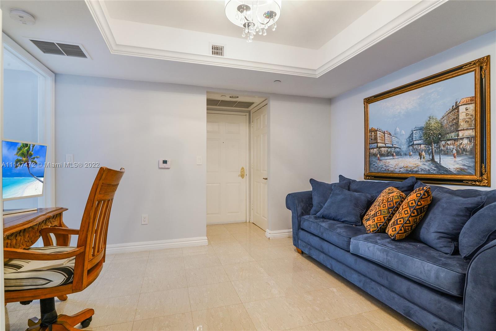 Millennium Condo located in Sunny Isles Beach offered for sale. 2 Bedroom/2bathroom plus den totaling 1,680 SF. Unit offers ocean views, two spacious bedrooms, large den area, substantial balcony, marble floors throughout, private elevator entrance, updated kitchen and bathrooms. Well maintained building with amenities including 24 hr Security & Valet, Tennis Court, Putting Green, Fitness Center, Spa, Massage Room, Beach & Pool Service, Dog Walk, BBQ, Playground. Lobby & Pool area recently renovated.