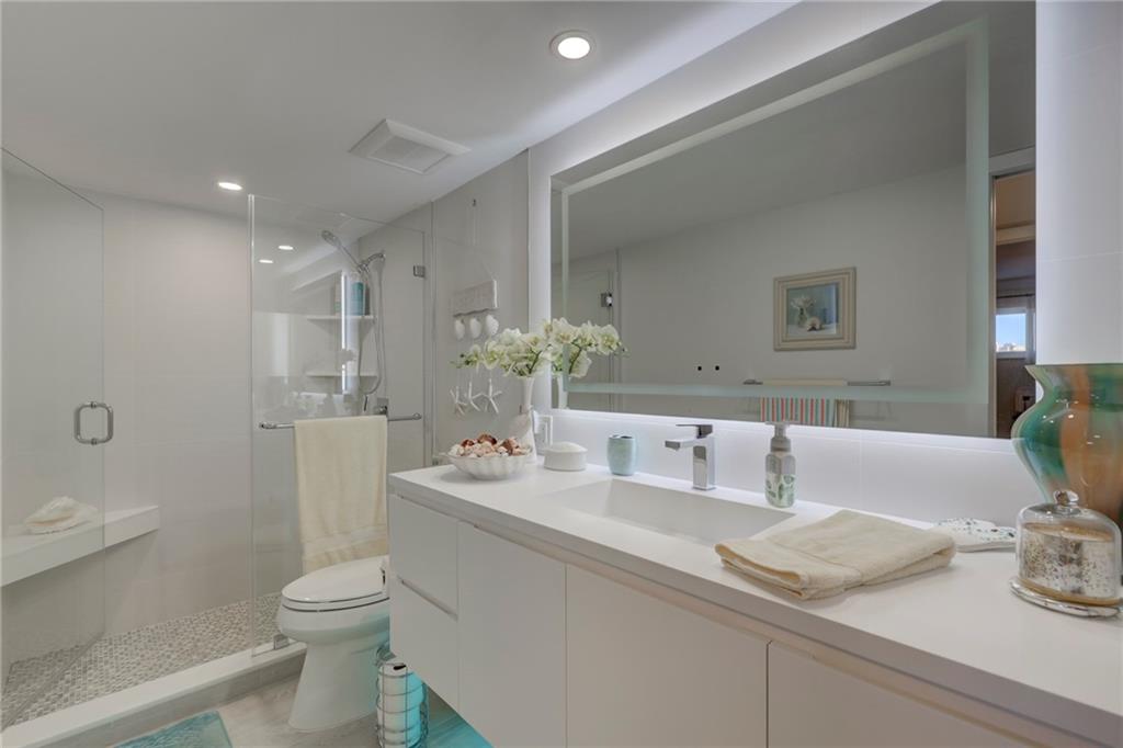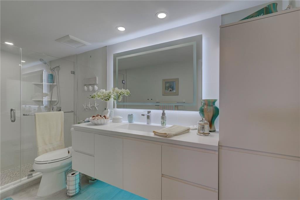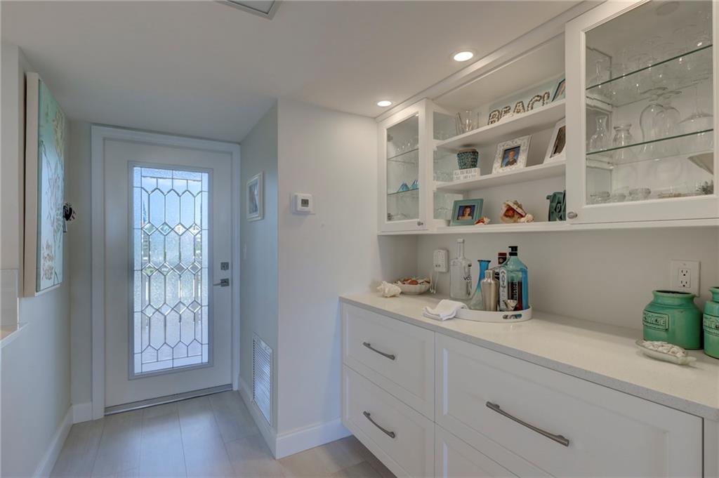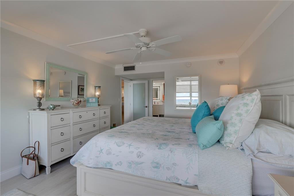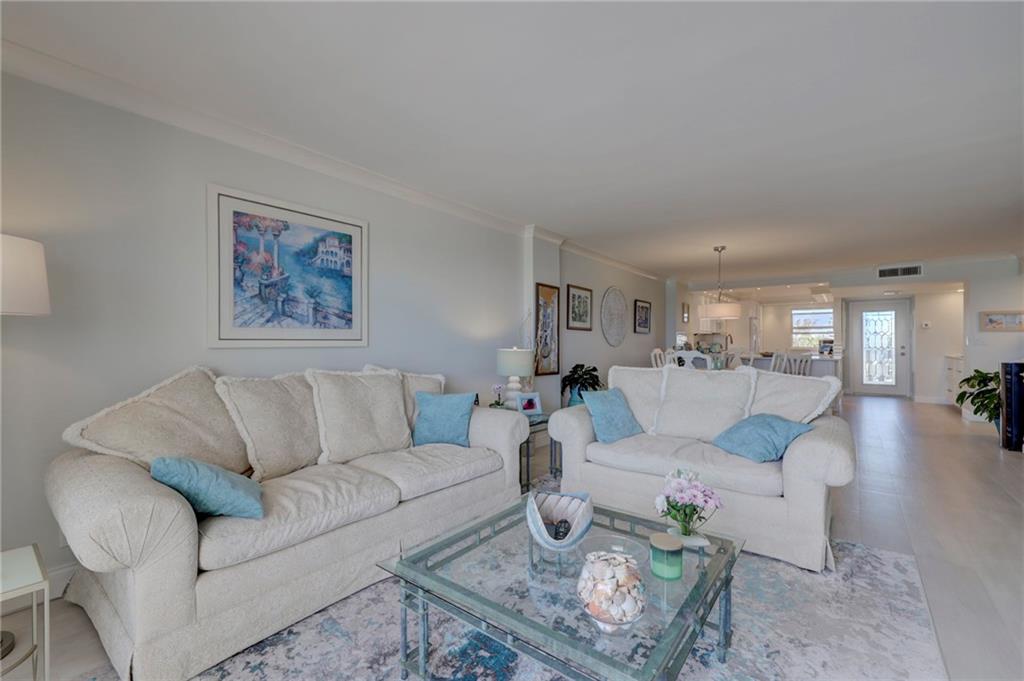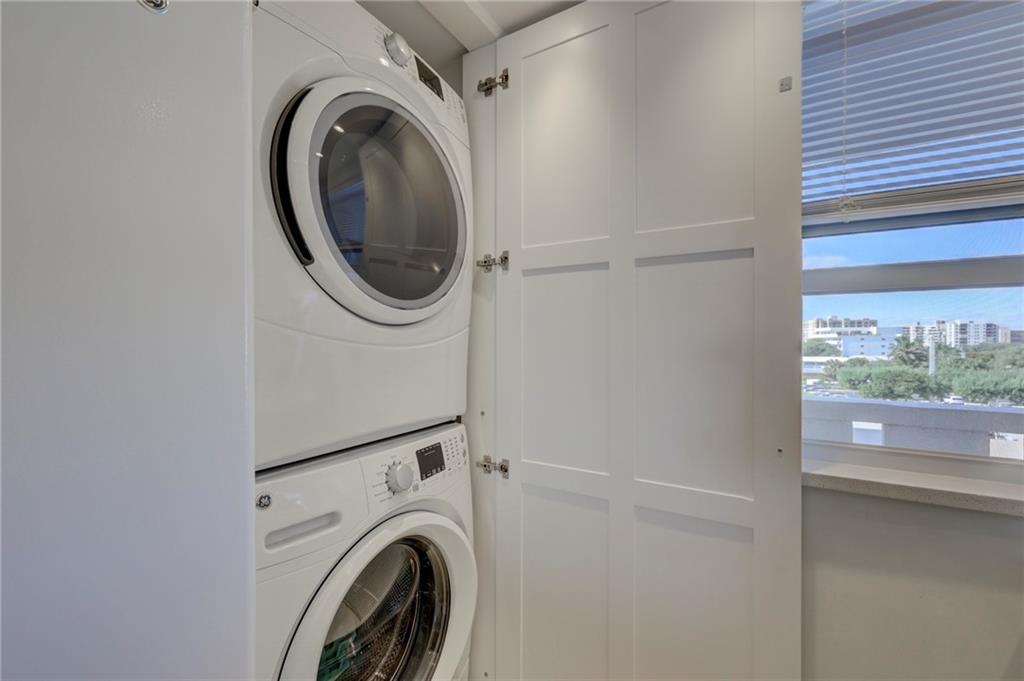This 4th floor direct ocean unit is stunning! View of the ocean from the kitchen, living room, primary bedroom and the balcony! The owners spared no expense to make this unit paradise! The unit has been completely remodeled with modern light decor, ceiling lighting, mirror lighting in bathrooms, beautiful porcelain tile floors throughout, quartz counter tops and 6in molding and trim. The kitchen maple cabinetry is custom and has more than ample storage in the kitchen AND under the bar! The kitchen layout and bar are perfect for someone that loves to cook and entertain. Washer/Dryer full size stackable in unit tastefully incorporated into the cabinetry so hidden from view. Furniture not included in the Listing price but is negotiable.