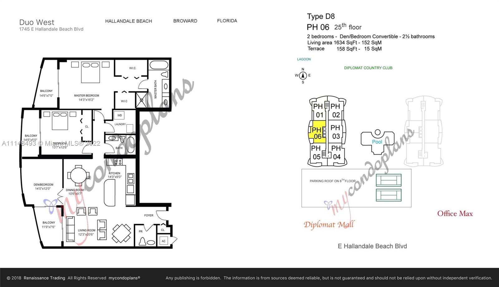 1700 square Ft Penthouse featuring 3 balconies with gorgeous sunset views, City skyline and the Gulfstream Casino. *2 deeded parking spaces & Special assessment paid in full* This 3 bedrooms plus 2.5 baths is located at the Duo Condominium which is one of the most respected buildings in the Hallandale Beach area. Great amenities: 24 hours security & valet services, heated pool, Jacuzzi, Gym, party room, Sauna, Steam Room, Billiard Room, Tennis Courts, Theater Room and more. Duo Condominium is within walking distance to: Restaurants, Grocery Stores, Medical Offices, major shopping stores and much more. The residence has 11 foot ceilings which gives an incredible feeling of wide open space. The building is within 3 minutes driving to the ocean and next door to the Diplomat Golf Course.