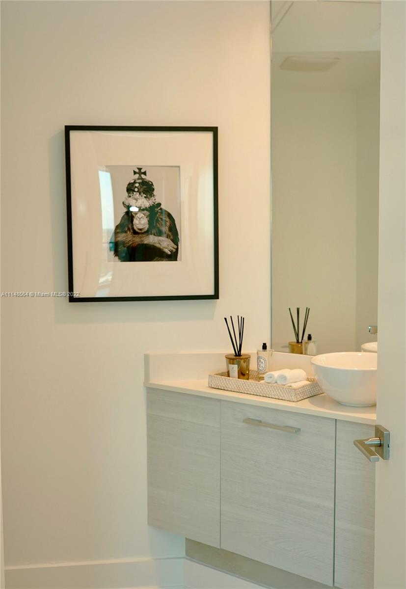 Paraiso Bay - new 1 bedroom & 1.5 bath apartment with direct breathtaking water views! Wood-look porcelain floors throughout the unit, Bosh appliances, top of the line finishes. Finished closets, roller shades & blackouts in bedrooms installed. Luxurious and state-of-the-art amenities, gym, spa, wine cellar, cigar lounge, theater room, two tennis courts, 100 feet diameter swimming pool. Private gated complex! Located in the edgewater neighborhood just minutes from Design District, Wynwood, Brickell, restaurants, entertainment and beaches. Unit is currently owner-occupied.