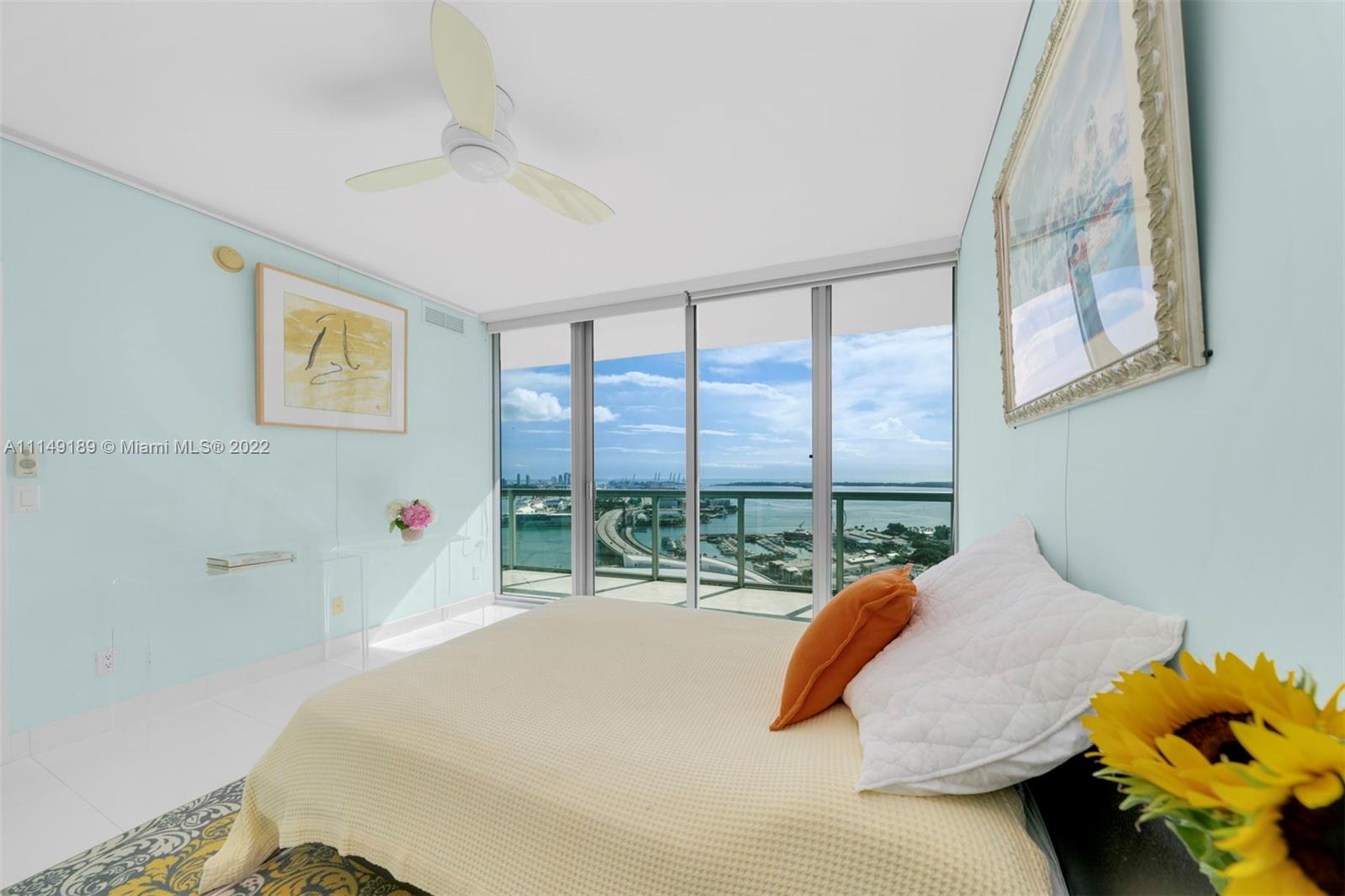 Welcome home to a large 1-Bed + Den condo on the 32nd floor overlooking the Miami Bay, Ocean & City. Featuring white marble floors, the residence delivers a lot of natural light with stunning sunrises coming from the East exposures to the bay. The spacious balcony is accessible from both the living & bedroom area providing picture perfect views. The residence is also equipped with built-out closets, a large master walk-in closet and custom built-ins in the kitchen. Located in Marina Blue, with sunrise & sunset pools, a volleyball court, a huge gym & jacuzzi, a BBQ area, art filled hallways and more. Right in the middle of Downtown Miami, close to the airport, Miami Beach, all of the major highways and where many prominent entertainment centers & projects are underway.