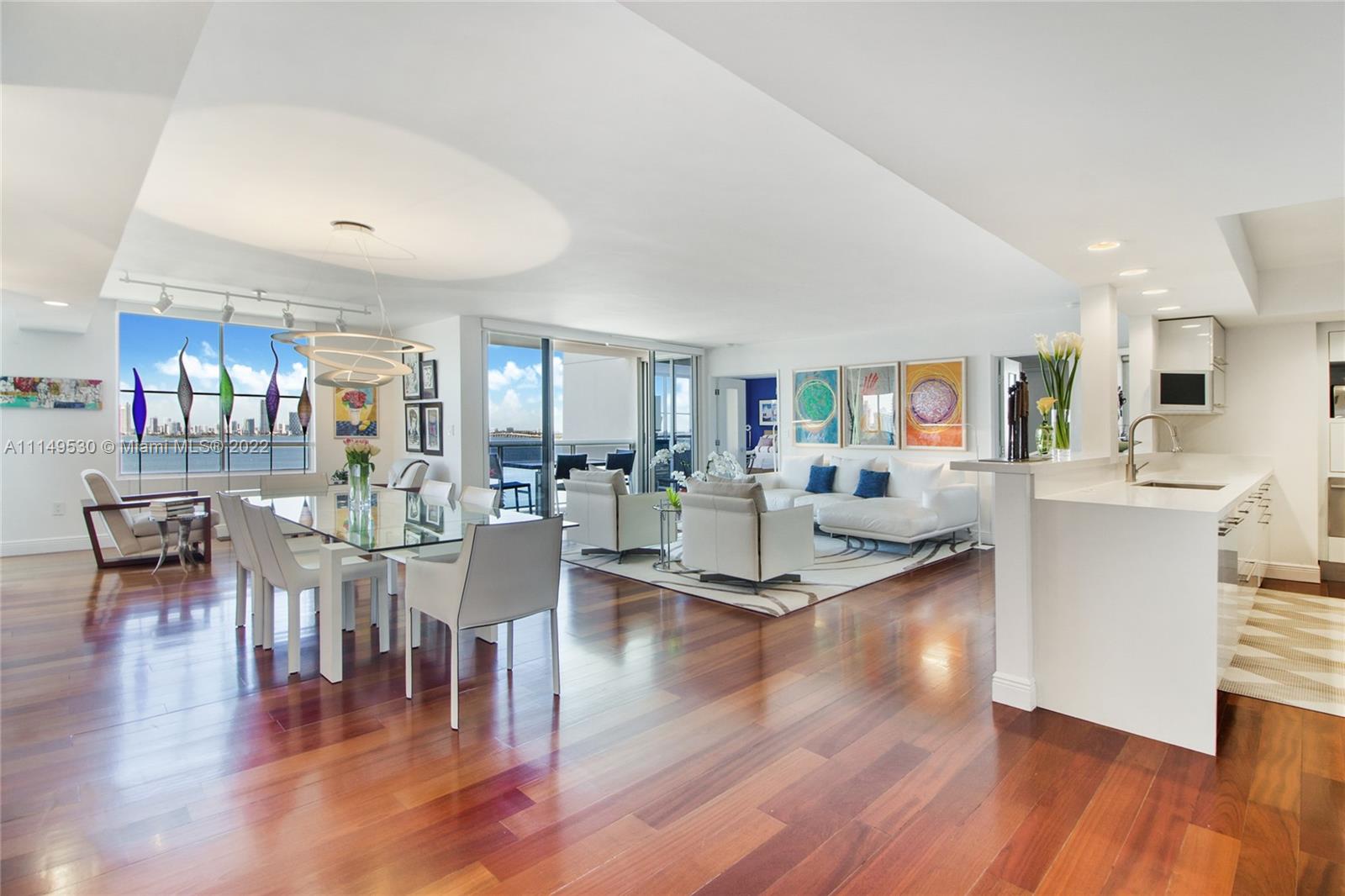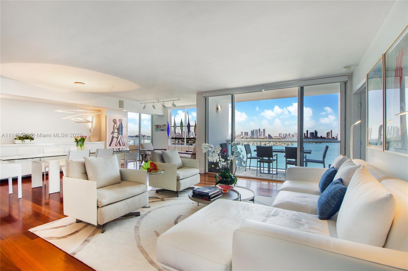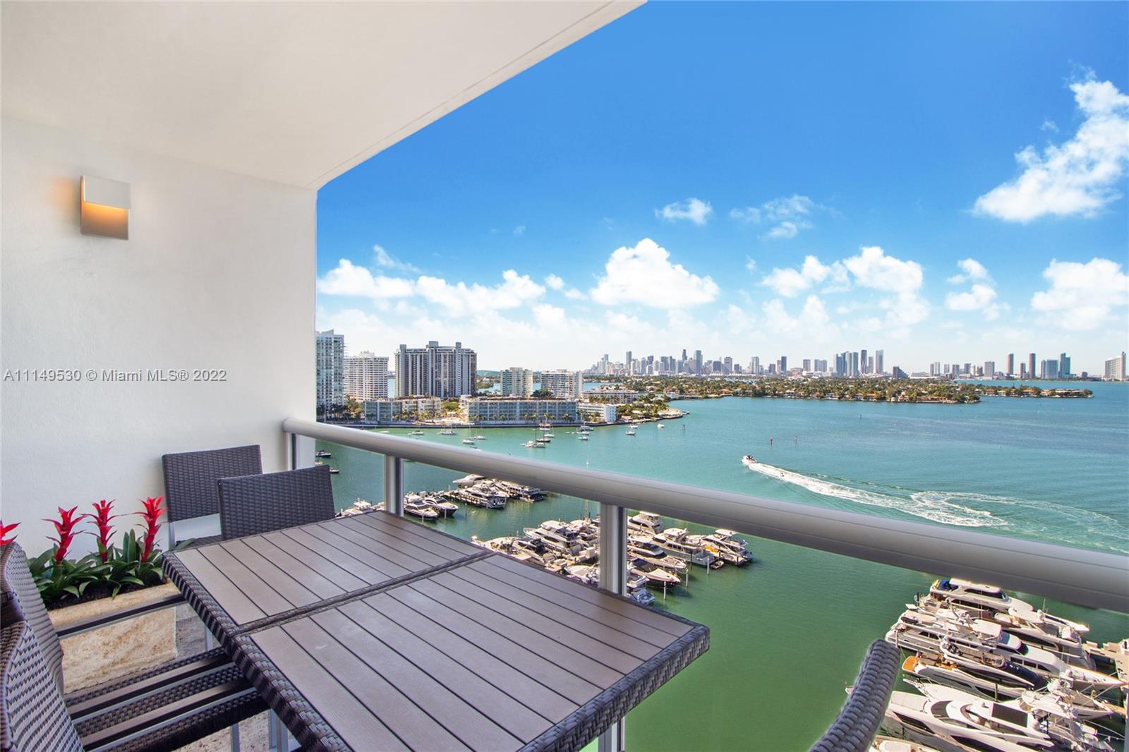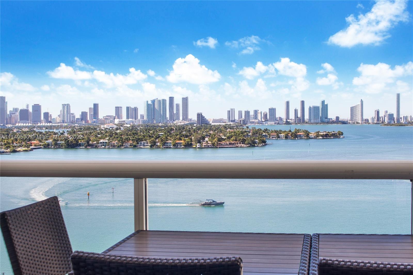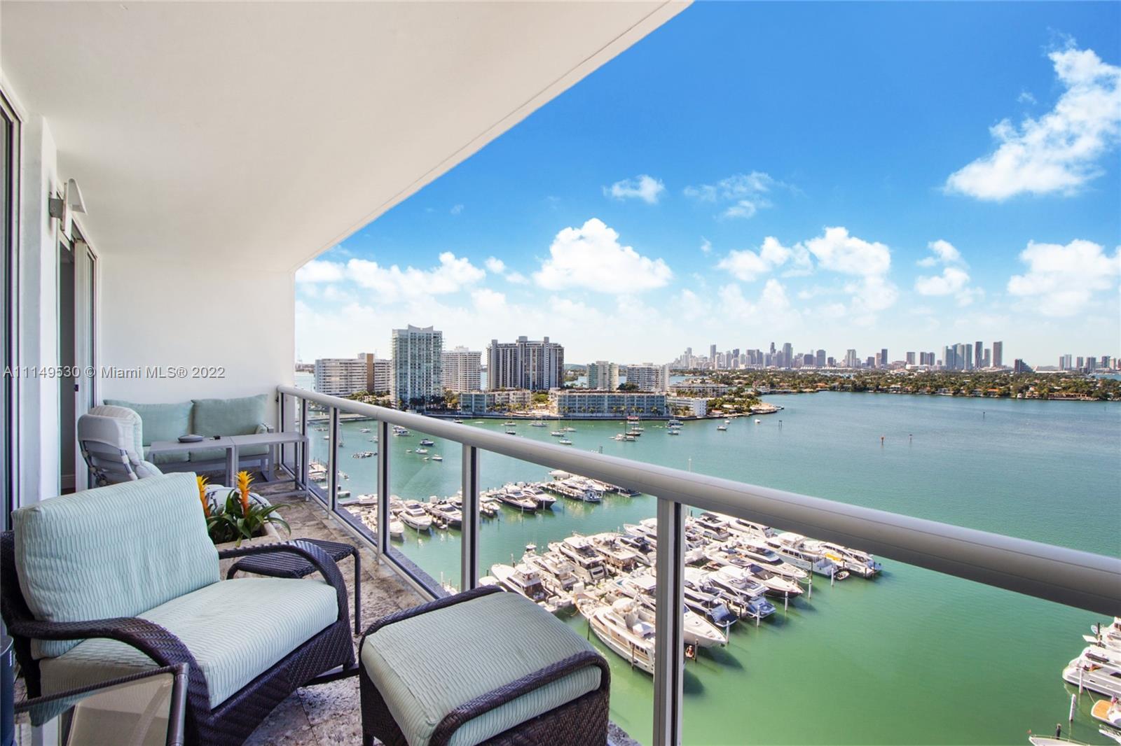Spectacular custom combined two condos with panoramic views of Biscayne Bay, Sunset Islands and Miami’s skyline, rarely available in Sunset Harbour North condo tower. Remodeled Sunset Harbor North corner residence with 2,350sf split floor plan featuring three large bedrooms + Den with three balconies. Interior features include wood flooring, custom kitchen with quartz countertops, custom cabinetry & built-ins, w/sound system throughout. Full-service building with full amenities & two swimming pools. Located in one of the most desirable neighborhoods in Miami Beach, with a wide range of shopping and dining options at your doorstep. Condo comes with two deeded parking spaces