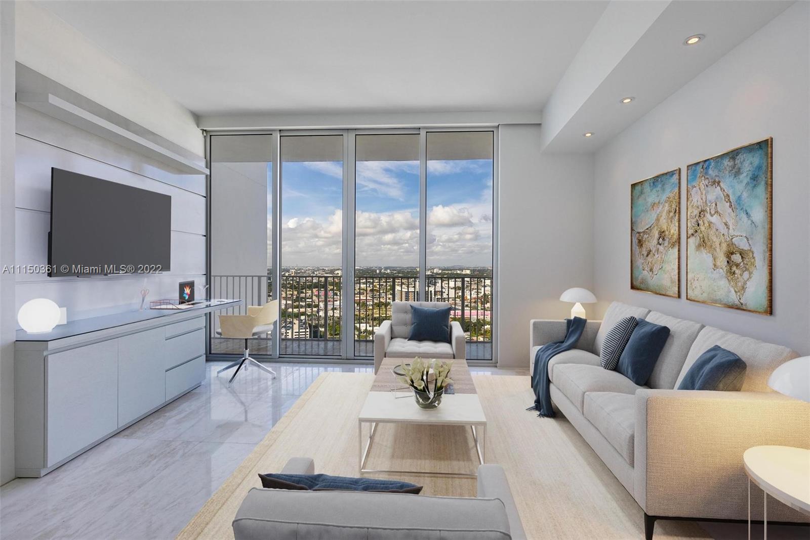 Absolutely stunning and rarely available high floor 07-line at prestigious Paramount Bay with spectacular wide bay and ocean views. This large 2-bedroom, 2.5 bathroom plus den (easily 3rd bedroom) flow through home has been beautifully upgraded with 36x36 Italian marble flooring, expanded kitchen with Quartzite counters & Subzero/Wolf appliances, electric shades and creatively designed custom closets maximizing storage. This home also features a private elevator entrance, 10-foot ceilings and two large terraces with sunrise to sunset views. Paramount Bay is a resort style building with amazing amenities that include an owners club room, east and west pool areas, beautiful fitness center and spa. Schedule a visit today, this will impress!