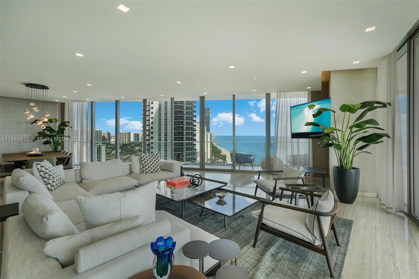 Step into Armani one of a kind Turnkey residence Designed & Furnished by Armani Design Team, Over $1million in renovations, Best Line of the Tower, doesn't get any better. Residence #1900 is finished with impeccable marble, wall to wall Armani design custom millwork incredible design details, 3800 sq, ft +1400 balconies, 4bed/5.5 bath + Service. Enjoy endless views from this gem, sweeping intracoastal views everywhere. The interior living space is spacious modern &elegant, 10ft ceilings, & expansive balconies over 100 ft length a bonus Summer kitchen on balcony, Chic European kitchen, Smart residence with digital techknowlogy Armani Casa residents can indulge in beach service, full service spa, private restaurant, game room, cigar/wine room, & much more. This is a turnkey Gem,
