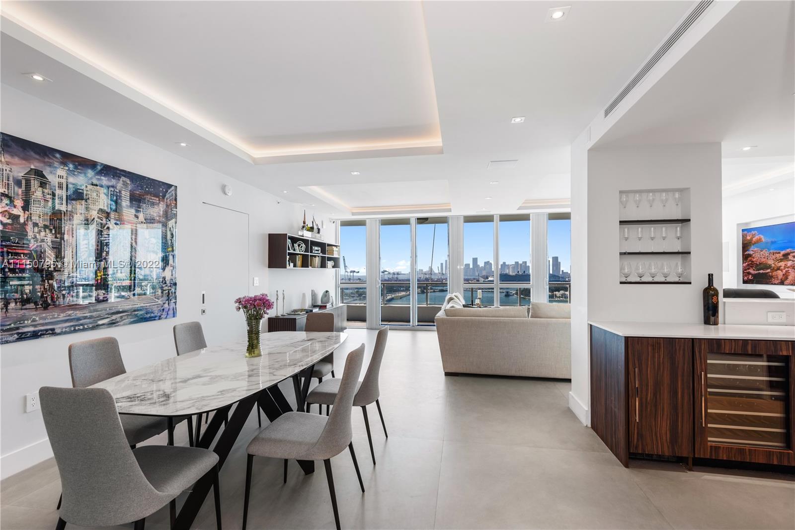 One of the most exquisite remodeled properties in Miami Beach. No expense spared in this 2 Bedroom + Den/3rd Bedroom, 3 Bathroom (1,929 SF) direct bay front unit. Features include Italkraft kitchen, Italian ceramic flooring throughout, custom vanities, LED lighting, sound/audio system, two private balconies with views of Biscayne Bay, Star Island, & Downtown Miami. Full service luxury building offers 24hr security, valet, concierge, fitness center & heated pool & spa. World class dining, entertainment & more!
