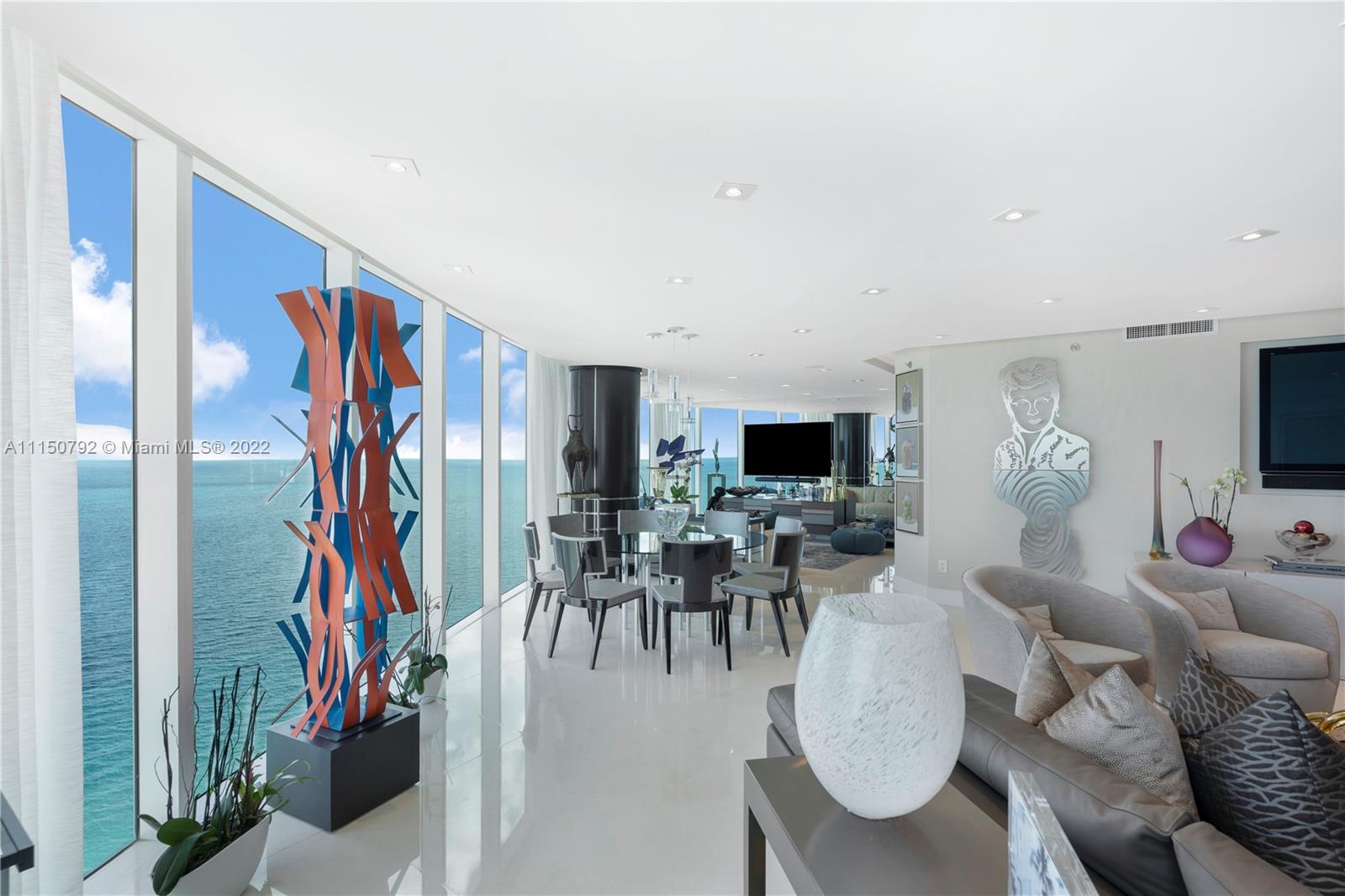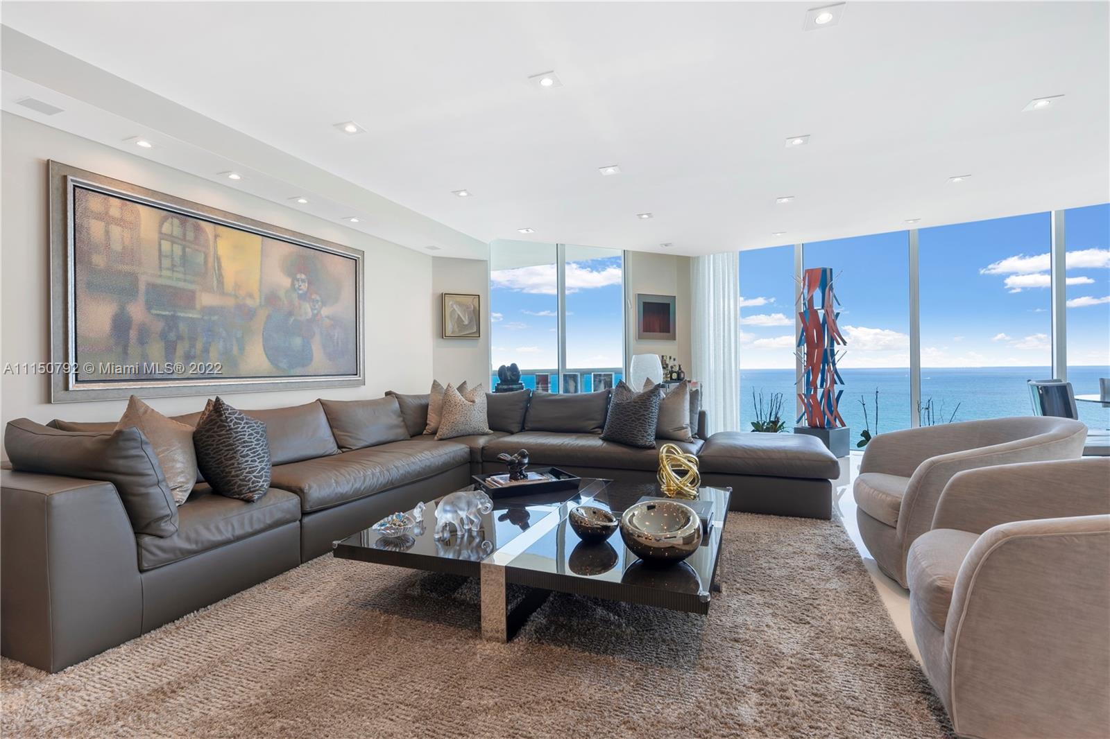 Breathtaking direct Ocean views in this upgraded "Steven G" designed unit 3 bed 3.5 bath plus den. Spectacular water views and spacious floor plan and impeccable finishes make this unit a unique one. Italian doors, wood paneling,polished limestone floors, automatized smart system, surround system, built in closets, upgraded electrical outlets and lighting to mention a few finest finishes. Furniture included with some exclusions and one storage bin included. 5-star amenities building with tennis courts, basketball courts, beach cabanas, full gym, spa, sauna, movie theater, barbecue, party room, Beach and pool services that include umbrellas, towels, and lounge chairs. Restaurant on site!