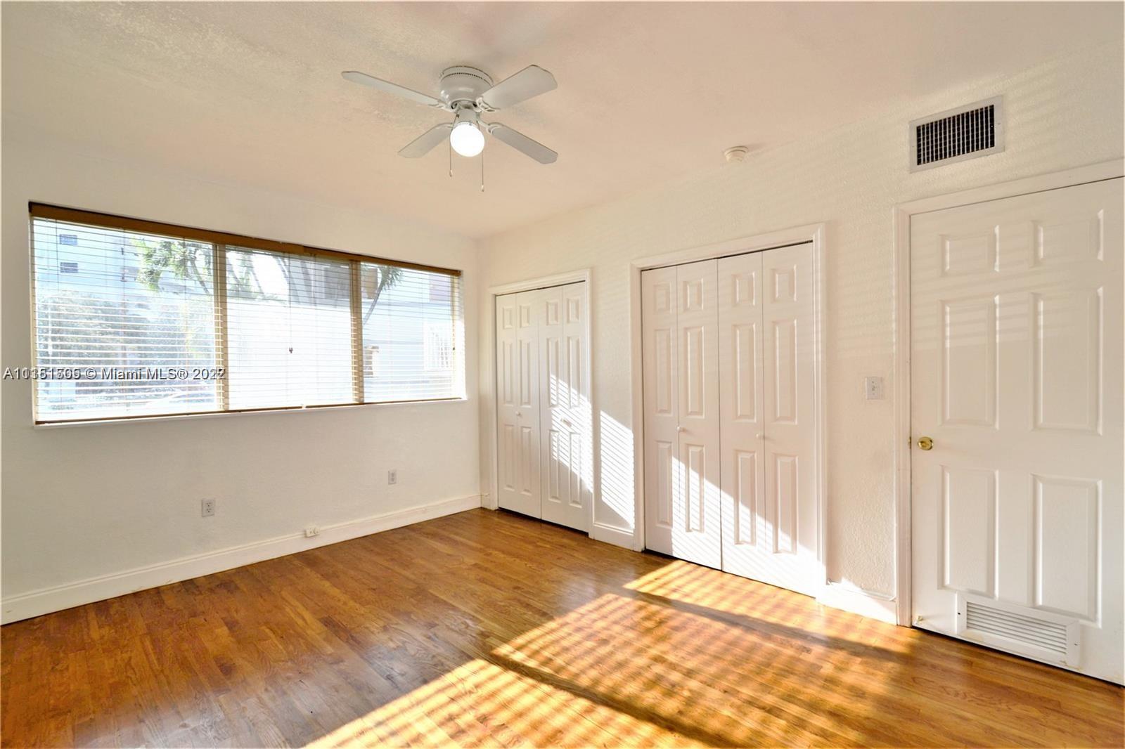 Charming and spacious 2 bedroom 2 bath residence overlooking Fairway Park with ASSIGNED PARKING! This condo features wood floors throughout, impact windows, individual washer/dryer, ample closet space, and full kitchen with SS appliances and a back door leading to a back patio. This unit includes central a/c, renovated baths, and it has been freshly painted. One of the best and most peaceful locations in North Beach with Normandy Shores Golf Course behind building and Million $ townhomes across the park. Easy access to Tennis, Basketball courts and Soccer Fields. Pets are welcome.