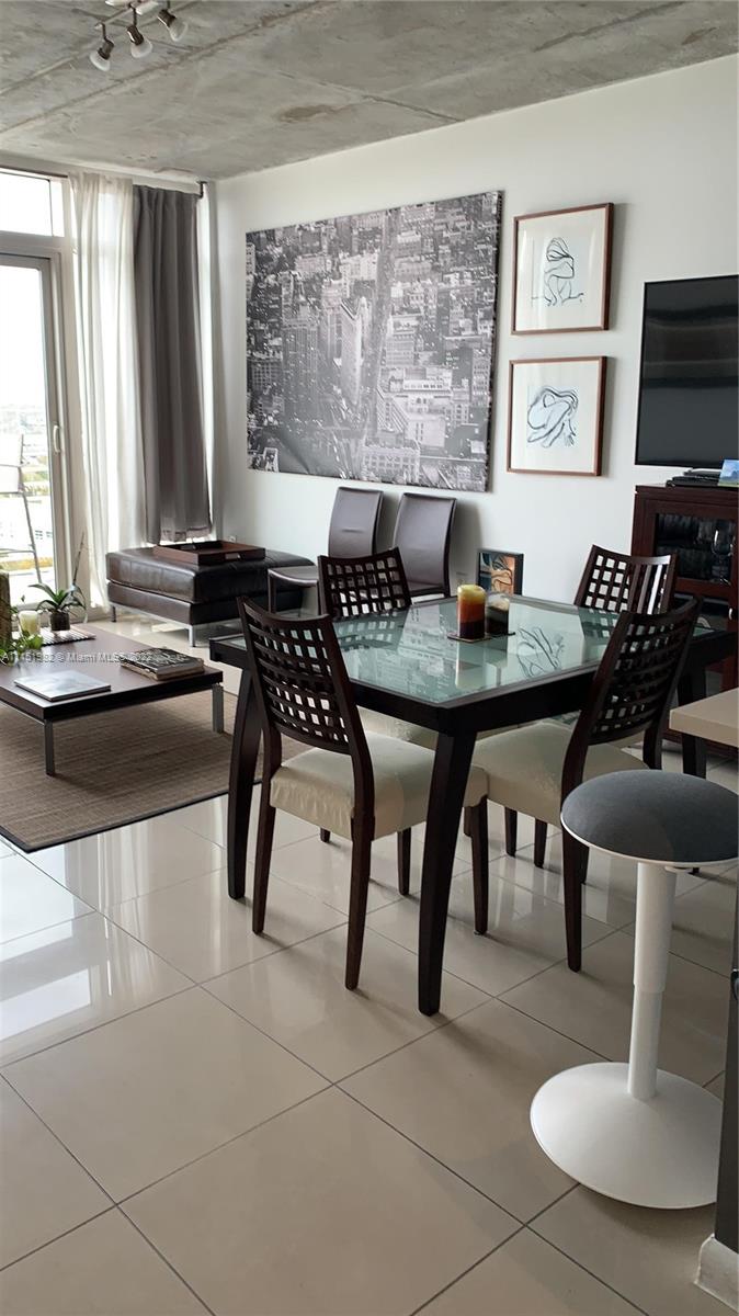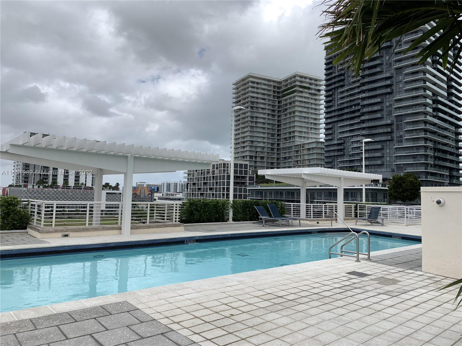 Modern and spacious apartment at Midblock condo. Industrial details, kitchen w/ stainless steel appliances, and stone counter tops. 10ft ceilings with exposed concrete and spacious private terrace with an open view. Building has 24-Hour concierge and security, chic modern lobby, covered gated parking, rooftop swimming pool, state of the art fitness center, BBQ, and mini golf. Ground level restaurants and shops. Short term & Airbnb are allowed.