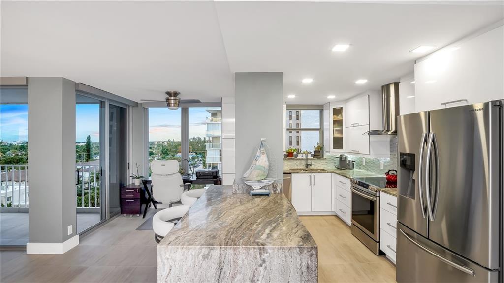 Best location in Pompano Beach! NW CORNER WITH SIDE OCEAN VIEW & SANTA BARBARA LAKE - INTERCOASTAL VIEW. Walking distance to Beach front restaurants and shops & the Pompano Beach Fishing Pier. The unit was completely renovated in 5 years ago including newer electric panel-AC unit-all new stainless steel kitchen appliances, electric blinds with remotes, custom made cabinets, quartzite kitchen counter, washer & dryer, impact windows & sliders, custom closets, tile throughout. Wraparound balcony. Just a short drive to Miami and Fort Lauderdale International Airports. 40-year inspection completed. Rents allowed after first year of ownership 2 times per year minimum 60 days. Friendly building with all the amenities. Maintenance fee includes water sewer garbage basic cable and internet. Hurry