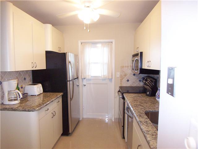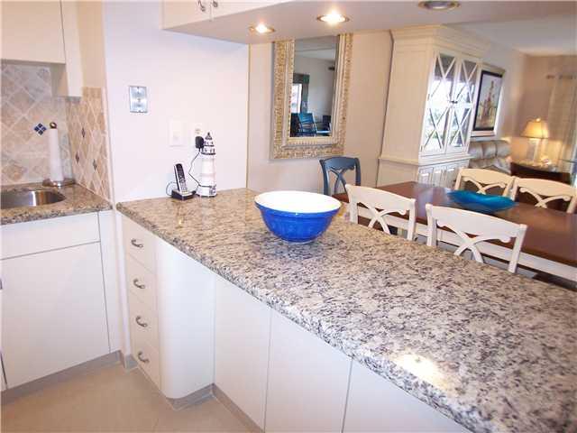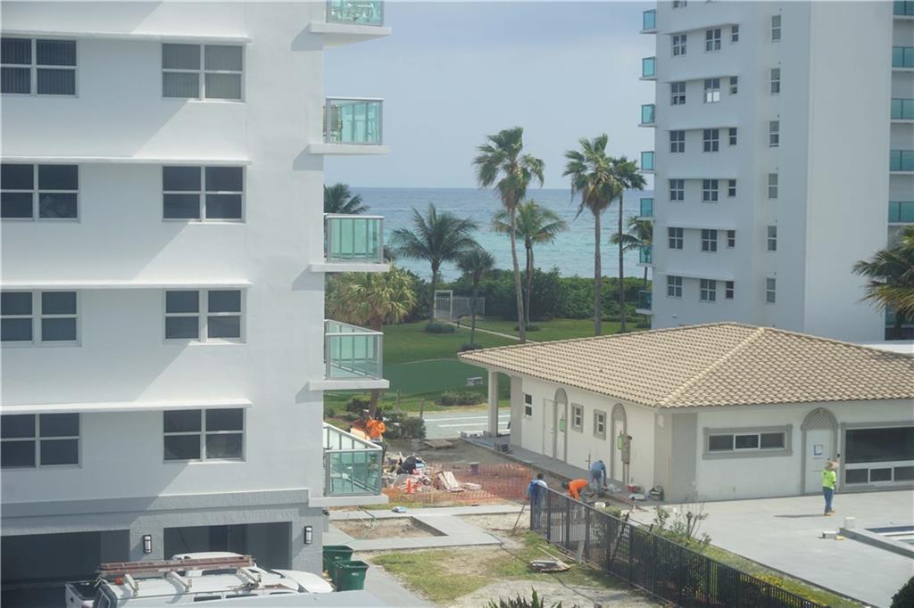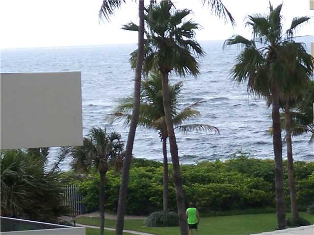 Beautiful condo in an ocean front complex. Nice partial ocean views. Large Porcelain tile and granite counter in kitchen. All hurricane windows. Immaculate maintained baths. Good fixtures, fans and appliances. Open balcony. The building is being refreshed and painted white with aqua trim. The pool and amenities are also scheduled for a facelift. Private gate to the ocean, bocce court, putting green and picturest grounds. One of the lowest maintenance on the beach. Locked lobby. This beauty has a renter until April 30 so we can show but not occupy until May