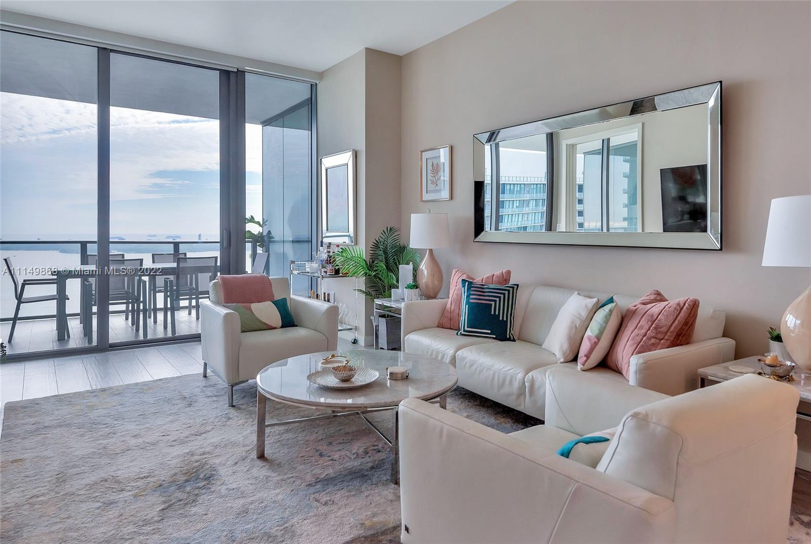 Come fall in love with Gran Paraiso # 4705. This amazing beautifully finished 2 Bed / 3 Full Bath has been decorated to perfection and features impressive direct bay views from the 47th floor, an oversized balcony perfect for enjoyment and entertaining, 1326 SQFT of living areas, 2 bedrooms + DEN / 3 full Bathrooms, private foyer, 10 FT ceilings (other 3 towers have 9ft), beautiful marble floors & kitchen countertop / backsplash, recess lights, custom made closets, Wolf appliances, state of the art kitchen and bathrooms. Gran Paraiso offers luxury lifestyle with beach type pool, Jacuzzi, kids play areas, movie theater, wine, cigar and party rooms, gym, spa, tennis courts, mini golf, BBQ, bowling alley, gym, spinning, aerobics, virtual golf. Easy to show. Will not last!