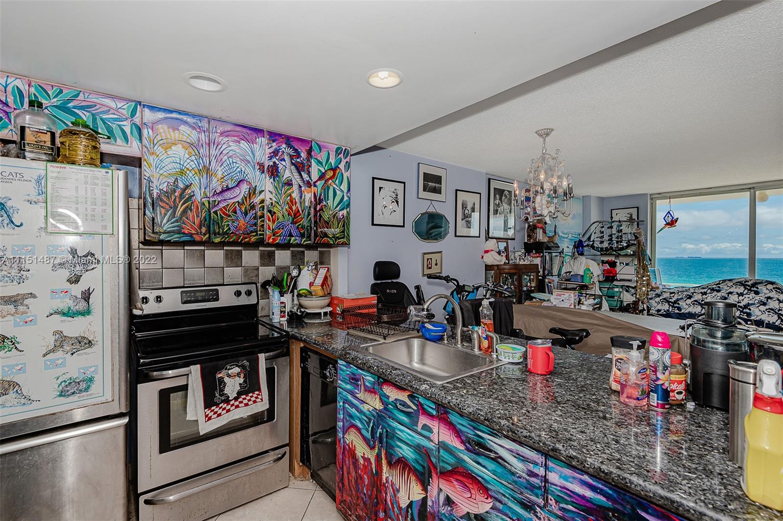 AMAZING CONDO. Partially renovated 1Bd/1Bth unit at 5th floor in oceanfront building in the heart of South Beach. Most desirable Ocean Drive location - Comfortable and beautiful apartment with breathtaking ocean views, plenty of storage, unique kitchen cabinets painted by an artist, washer and dryer on each floor, easy access from elevator. Additional features include: outdoor direct ocean view heated pool with huge pool deck, recently redone fully equipped fitness center, sauna, social lounge , gated community, secured elevators and complete 40 year Certification. **living room chandelier not included **