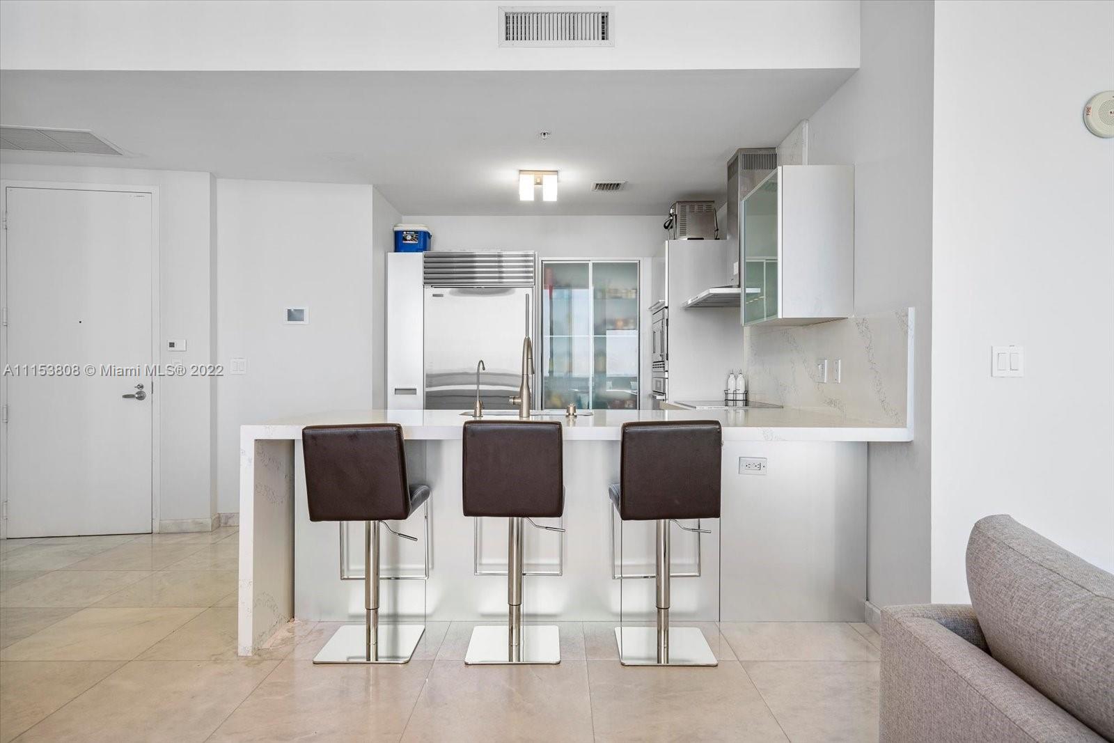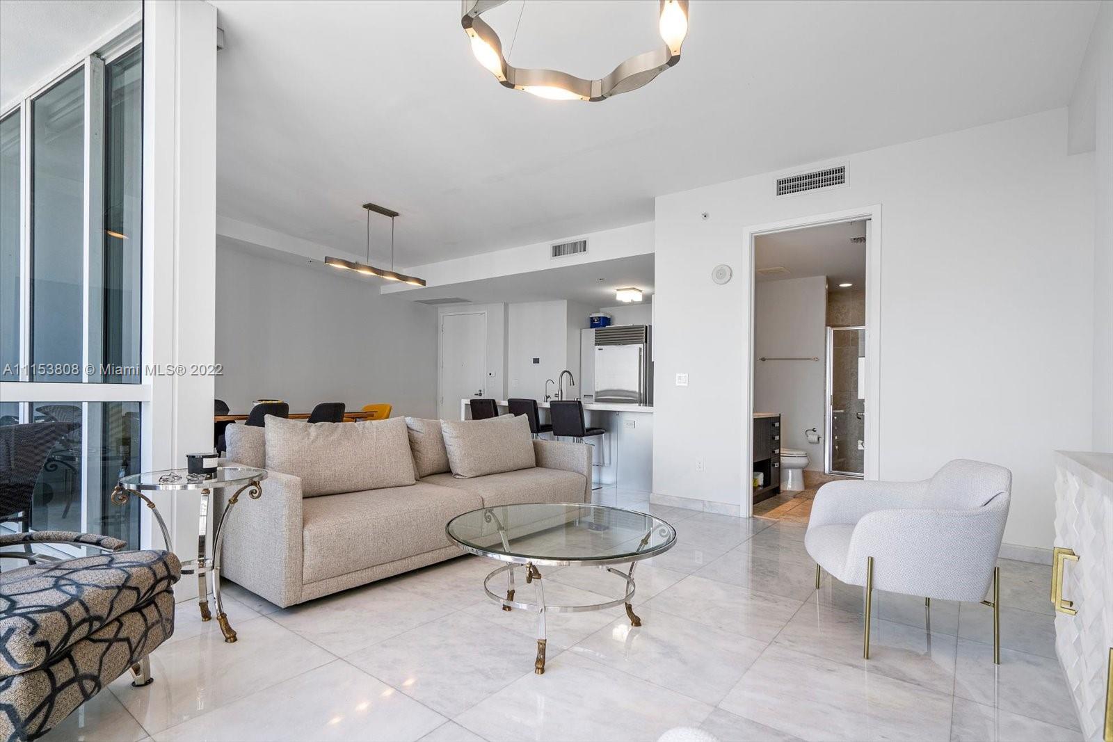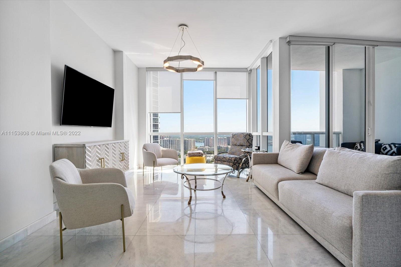 Gorgeous 2 bedroom, 2 bathroom unit with lots of floor to ceiling windows and natural light from this bright and modern unit. Beautiful white and gray quartz counters to match the marble flooring throughout, "his and her" separate bathroom tiled with mosaic, custom closets, electric shades, mew washer/dryer and more. Oversized master bedroom with walk in closet. and open kitchen to wide living and dining space overlooking intracoastal, and downtown skyline. Partial ocean view from one balcony and corner of living room. . Shows beautifully, best price per square foot in the building, will not last!