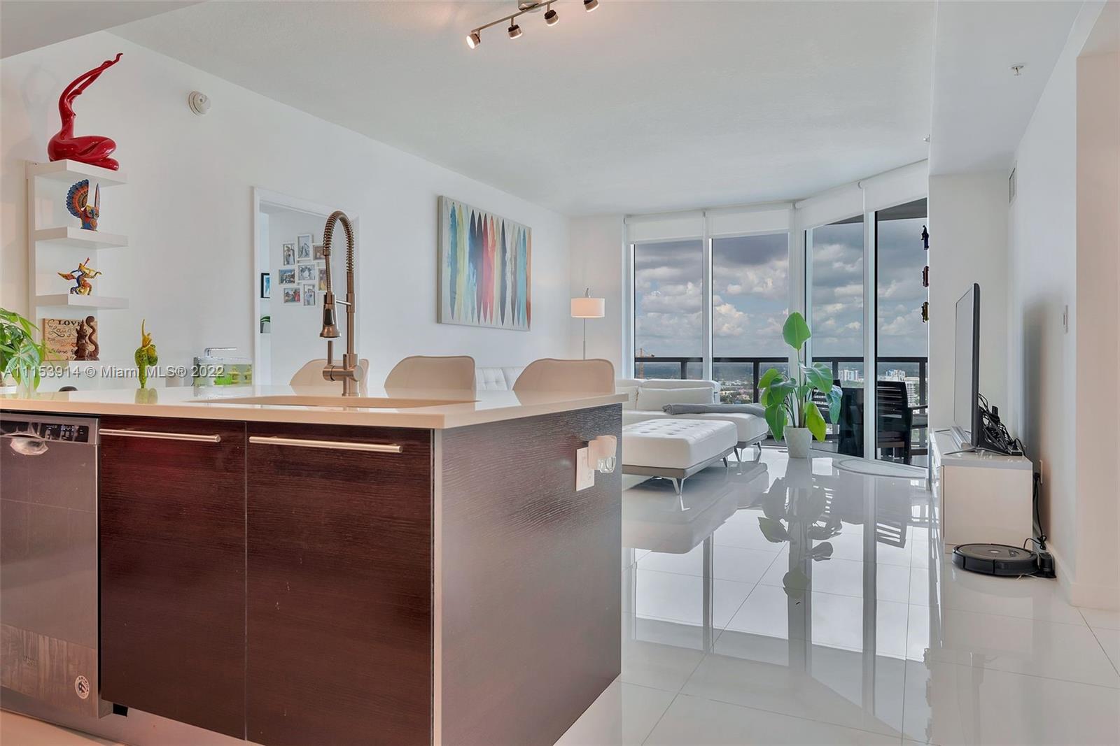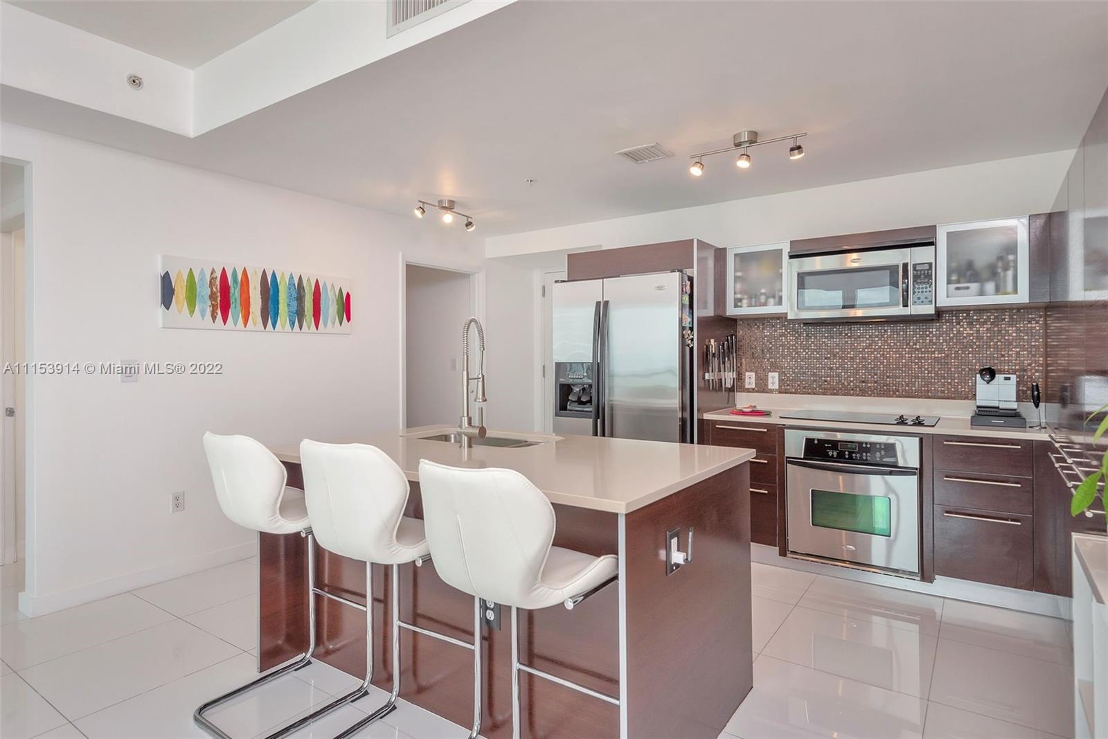 Amazing unit at Quantum on the Bay, luxury condo located in Edgewater. This spacious 2 Bedrooms & 2 1/2 Baths apartment features European styled open kitchen with granite counter tops, oversize cabinets, Stainless Steel Appliances, Washer and Dryer inside the unit. One Assigned Parking Space plus another one available if requested. Building amenities include: 2 Swimming Pools, Gym, 2 Lounges, 2 Billiard Tables, Theather Room, 24 Hours Security, Convenient mini-mart store, hairdresser, dentist, Professional business center on-site.