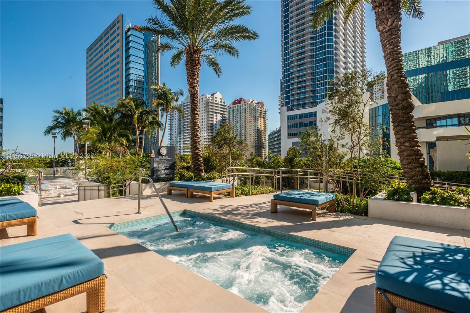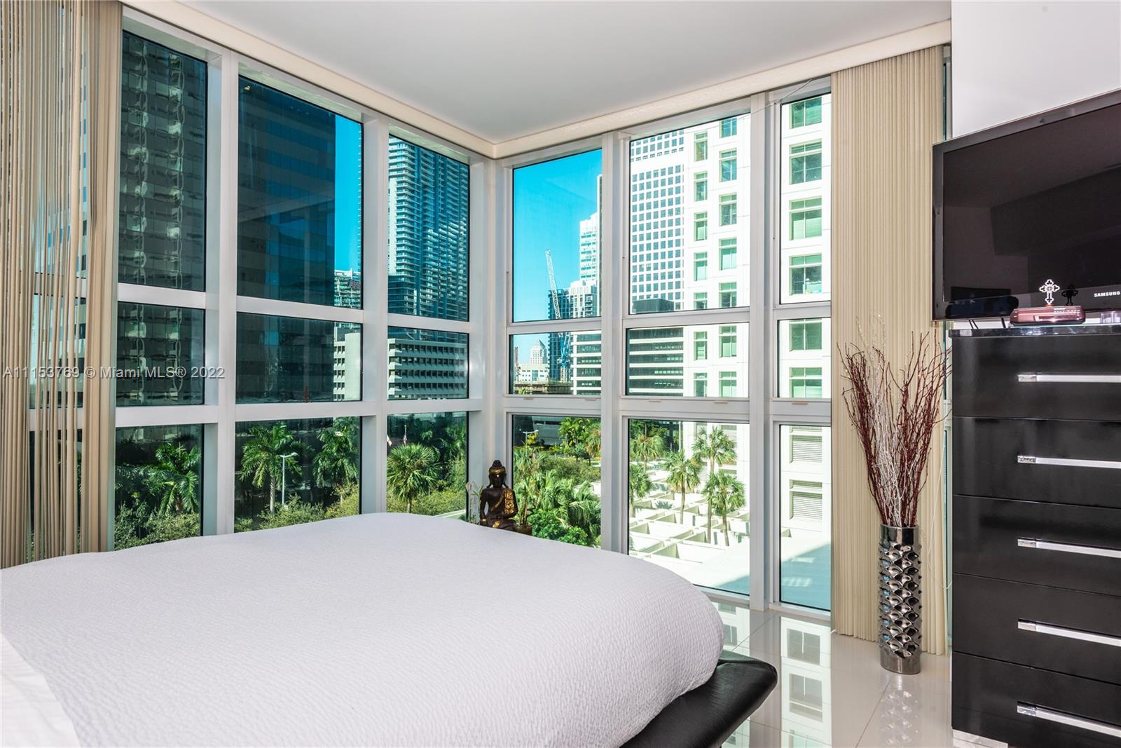 Bright over-sized corner unit with porcelain tile floors throughout. No Carpets! Floor-to-ceiling glass throughout master bedroom, providing city views and plenty of natural light! Bathroom with double sink, glass shower enclosure and window. Open kitchen with bar area for dining & cooking. Washer & Dryer in Unit. Large balcony that is set back from Brickell Avenue with views of Brickell City Centre and more. Plaza has great amenities, 24-hour concierge, 2 infinity pools, gym, steam room, party room, movie theater & business center. Cable and Internet are included in maintenance fees. 1 assigned parking space. Walk to all the best in Brickell. An exciting urban lifestyle awaits!