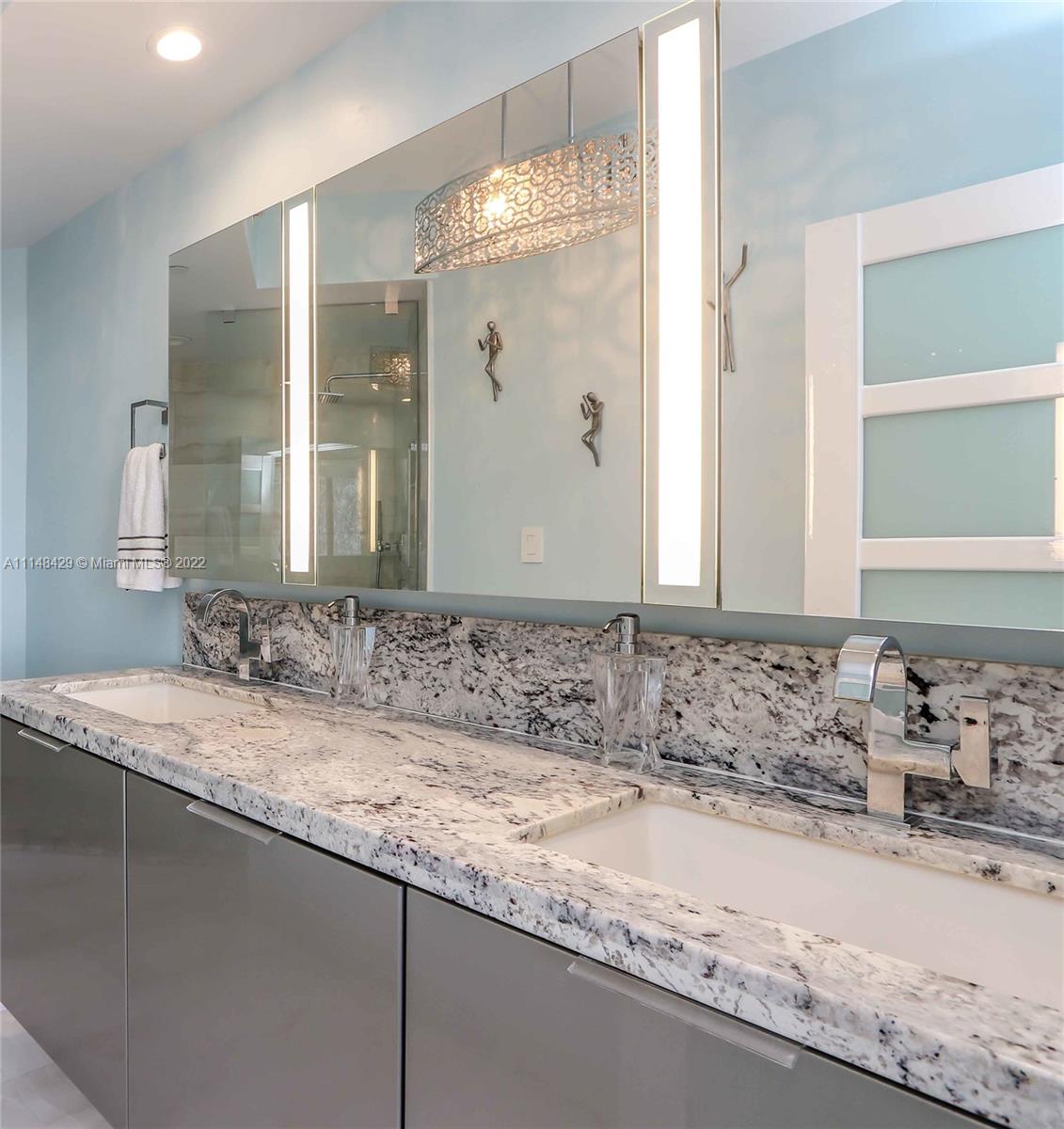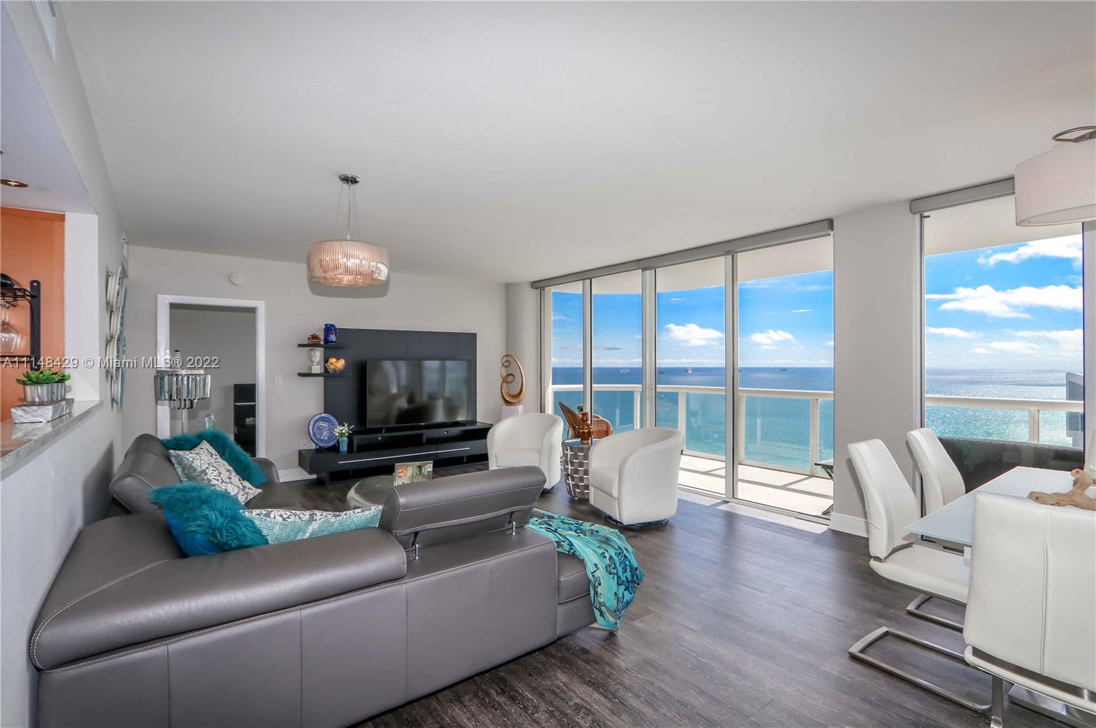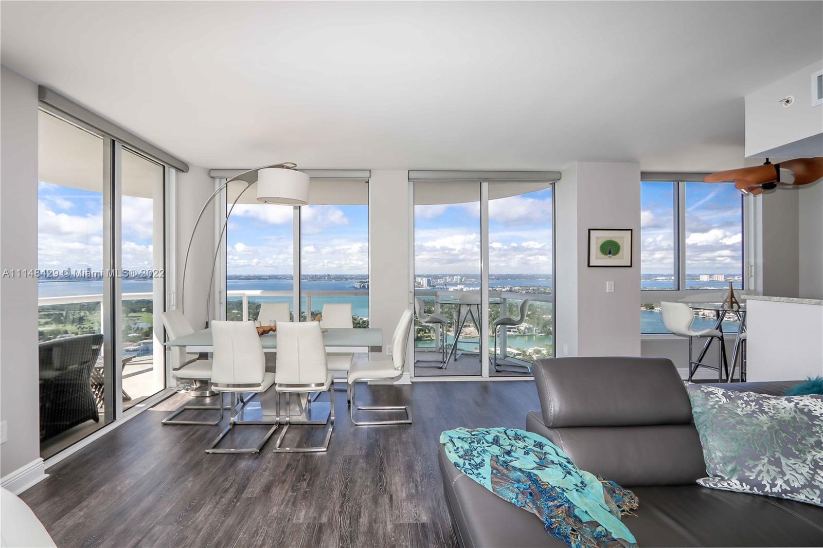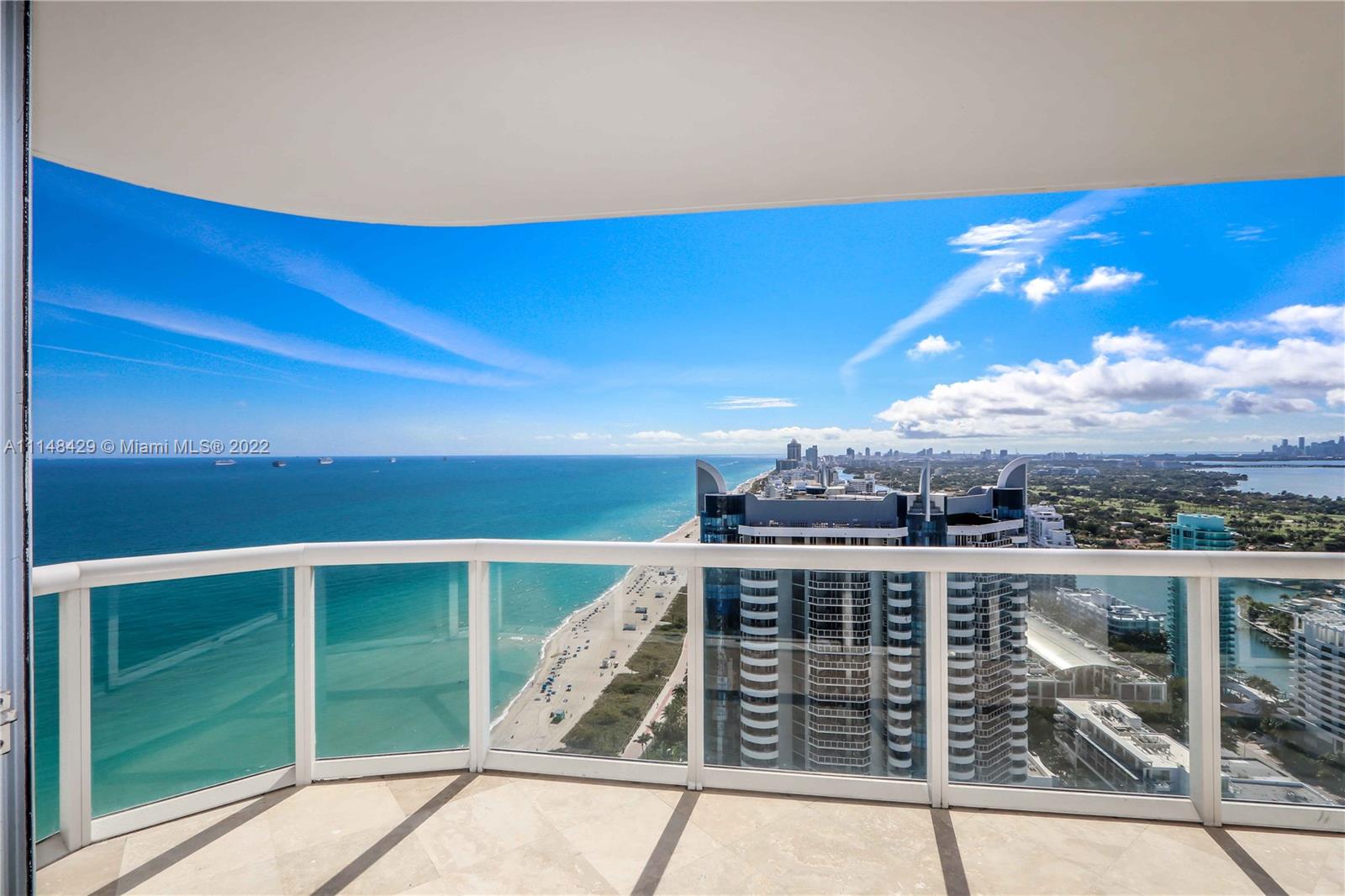 Wake up to the sound of ocean surf as you watch the sunrise over the well-groomed beaches of the Atlantic Ocean. Enjoy a sunset cocktail on the wrap-around 270 degree balcony as you watch the bright lights of Miami’s skyline reflected in the Intercoastal waters. Designer updates abound throughout this corner unit with unobstructed views in the highest building in North Beach, within walking distance of restaurants and shops, and full of modern and updated amenities. Valuable 2/2 split bed/bath layout includes floor to ceiling power shades, completely remodeled bathrooms, and master custom closet. Amenities include direct access to the popular beach walk, beach attendant, heated pool and spa, fingertip security and seventh floor attended gym with ocean views.