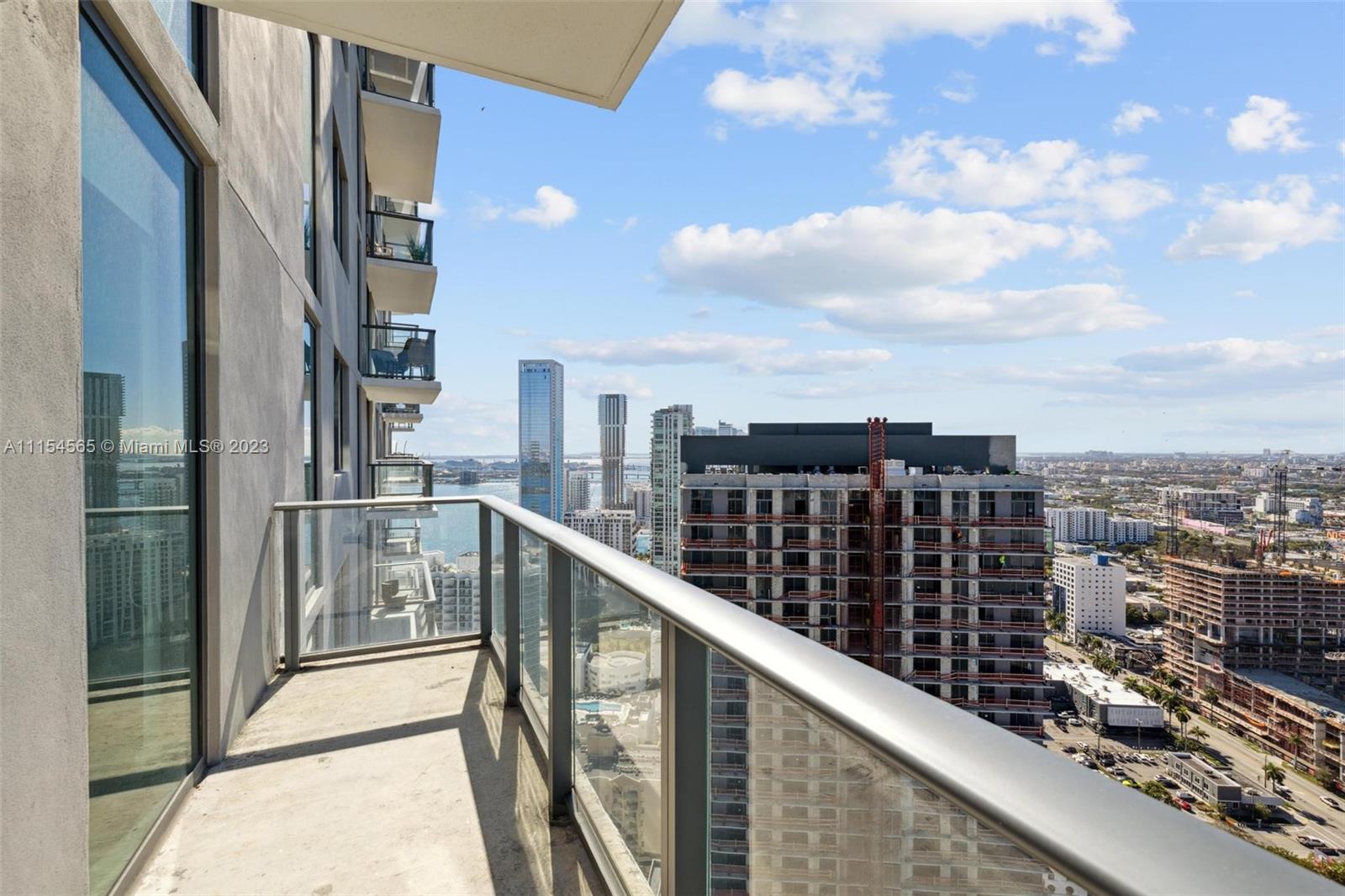 Beautiful 2/2 unit in Paraiso Bayviews. The fourth tower of the Paraiso mega project in Edgewater, offering spectacular 180 degrees of bay and city views in this 36th floor unit, with a deep and and spacious wrap around balcony, 9' high floor to ceiling windows, open kitchen concept, high end Bosch stainless steel appliances, with 2 floors of first class amenities including a rooftop infinity pool, jacuzzi, fitness center, theater, BBQ area and more. Units can be rented for a minimum of 30 days, for up to 12 times per year. Easy to show.