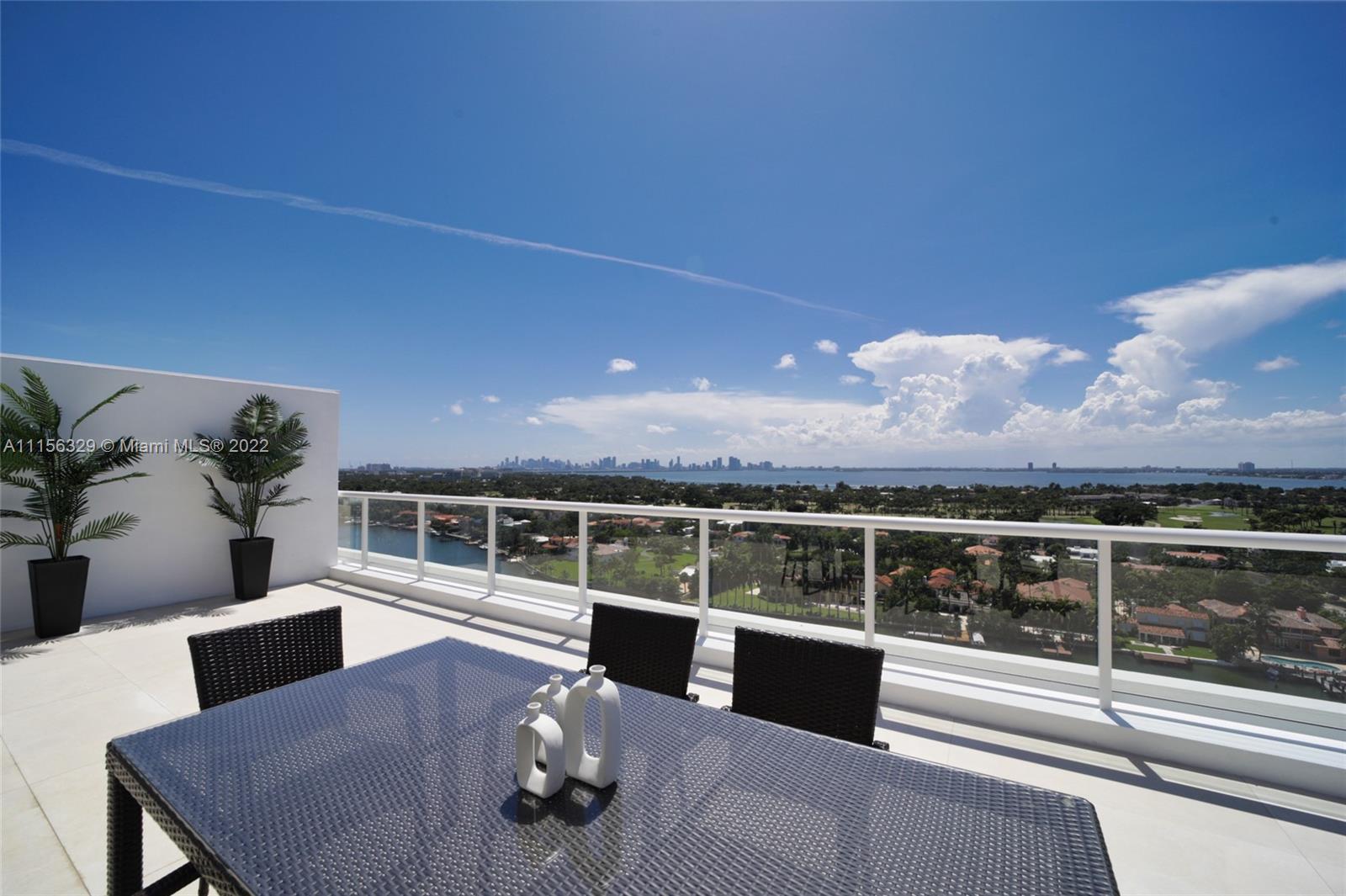 THIS LUXURY 3 BEDROOMS, 3 FULL BATHROOMS PENTHOUSE IS DESIGNED FOR YOU. 2,100 SQUARE FEET UNDER A/C & AND ADDITIONAL 1,200 SQUARE FEET OF TERRACE W/ GORGEOUS VIEWS OF THE INTRA-COASTAL, BISCAYNE BAY, LA GORCE GOLF COURSE, & DOWNTOWN MIAMI AND THE SUNSET. AMAZING JACUZZI ON THE TERRACE. THIS UNIQUE PENTHOUSE INCLUDES A POOL-SIDE CABANA W/DRESSING ROOM & FULL BATH. THE RESIDENCE COMES FULLY FURNISHED, FEATURING ITALIAN SNAIDERO CHERRY WOOD KITCHEN CABINETRY, MIELE APPLIANCE. CHERRY WOOD FLOORS. MARBLE BATHROOMS. LAUNDRY ROOM WITH SINK. PRIVATE STORAGE ON THE APARTMENT FLOOR. PRIVATE WINE CELLAR. 3 PARKING SPACES ASSIGNED. BUILDING HAS BEEN COMPLETELY RENOVATED WITH NEW GYM, POOL AREA, ELEVATORS, LOBBY,HEATED POOL, RESTAURANT.FULLY FURNISHED. BUILDING HAS PRIVATE MARINA. BOATERS DREAM.