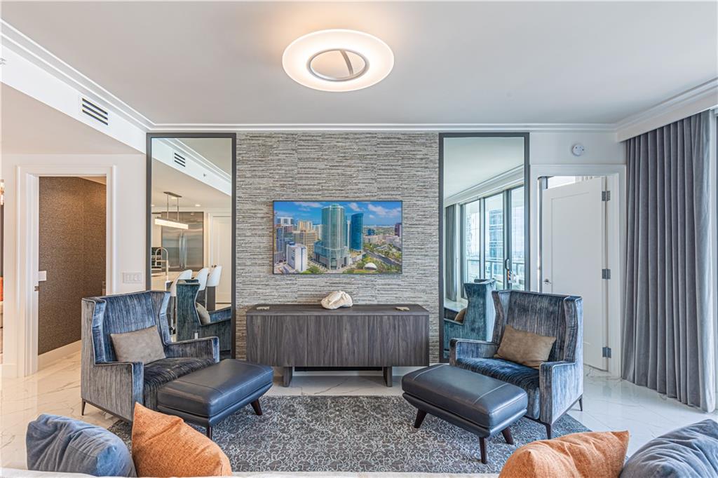DESIGNER FINISHED TWO BEDROOM + DEN / TWO AND A HALF BATHROOM ON THE 27TH FLOOR AT THE NEW 100 LAS OLAS RESIDENCES* CITY & OCEAN BACKGROUND* FLOOR TO CEILING WINDOWS & SLIDERS OFF THE LIVING ROOM & BEDROOMS LEADING TO AN OVERSIZED TERRACE* DEN INCLUDES A FULL WET BAR WITH FRIDGE & WINE COOLER (ADDITIONAL WINE COOLER IN KITCHEN)* ELECTRIC SHADES THROUGHOUT* BUILD-OUT CLOSETS WITH BARN STYLE DOORS* ***4 PARKING SPACES INCLUDED*** STORAGE UNIT (SAME FLOOR)* TOP OF THE LINE APPLIANCES & FINISHES* WALK TO EVERYTHING DOWNTOWN, LAS OLAS & THE RIVER INCLUDING BARS, RESTAURANTS, SHOPPING & GROCERY STORE* HYATT CENTRIC BRANDED HOTEL & RESIDENCES WITH RESORT STYLE AMENITIES INCLUDING TWO POOLS, FITNESS CENTER, CLUB ROOM, RESTAURANTS, BAR AND GUEST ROOMS*