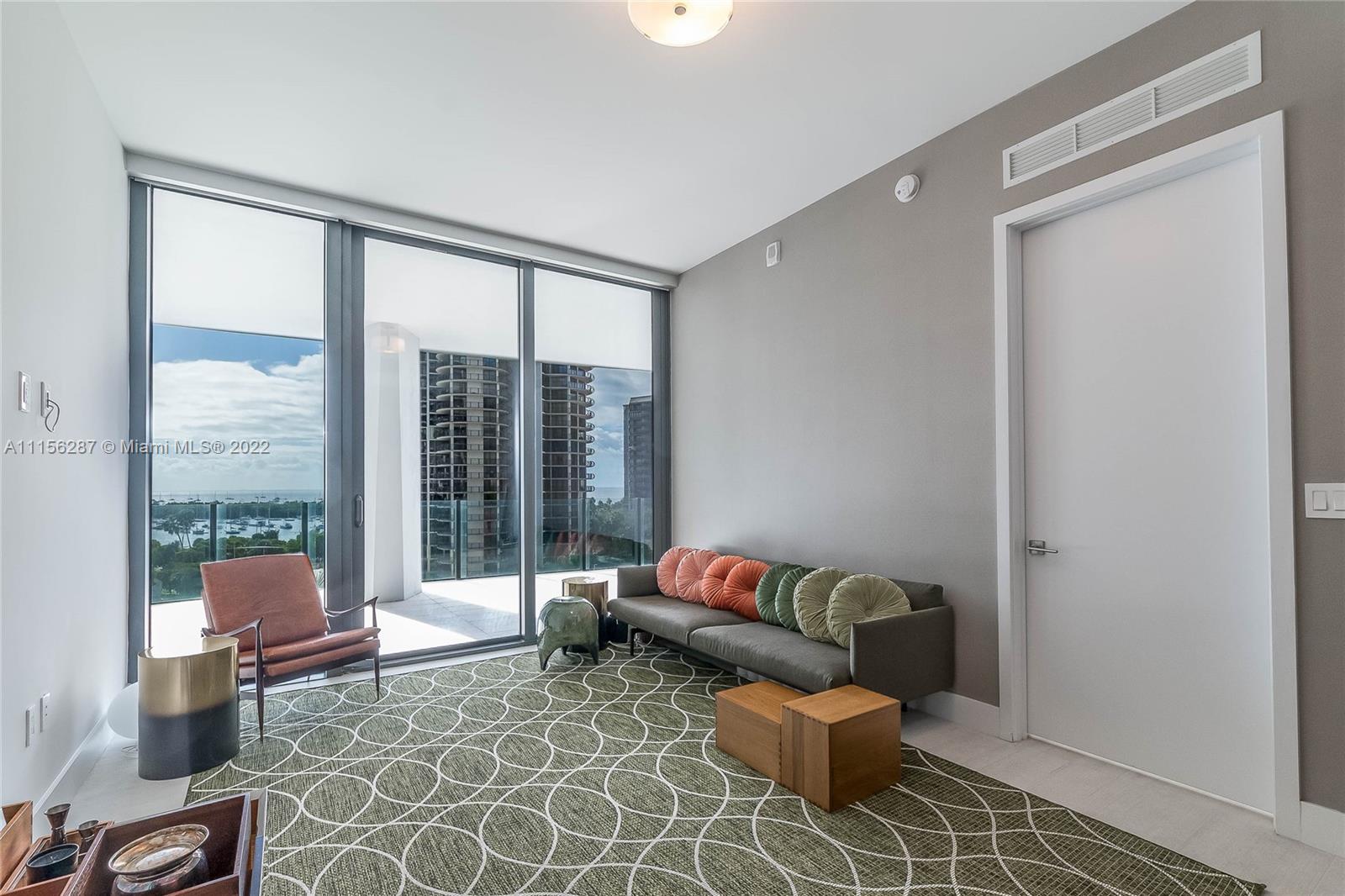 This stunning 2-bedrooms, 2 bathrooms and a den condo located in the luxurious Club Residences Park Grove embodies prime Coconut Grove living. The residence features 10ft elevated ceilings, a split floor plan with high-end ceramic floors throughout and an extensive 400+sf private terrace with direct views of the bay facing East. Gourmet kitchen with an open bar counter, Wolf & Subzero appliances, and marble countertops. Motorized window shades, blackout shades, walk-in closets, and beautiful water views from each room. Residence comes with one assigned parking. Experience only the best, 5-star amenities such as 5+ acres of lush, landscaped gardens , 24-hr concierge/valet, business center, fitness center, rooftop pool, spa, theater, onsite restaurant, children's playroom and much more.