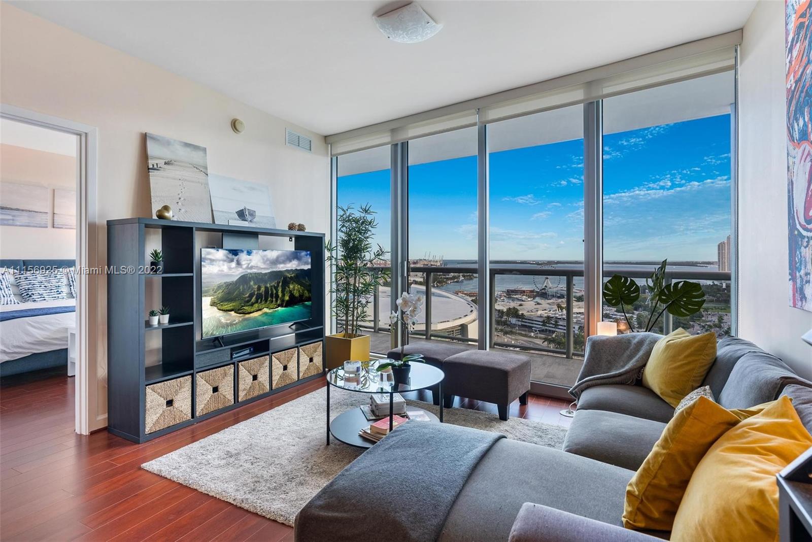 Spectacular 1 Bedroom and 1.5 Bath unit at the MarinaBlue. Enjoy stunning breathtaking panoramic views of Biscayne Bay, Ocean and the Downtown Miami skyline. Unit offers floor to ceiling impact windows with marble and hardwood floors, large balcony, open kitchen with stainless steel appliances and granite countertops. Luxury amenities include 2 pools, Hot Tub, Fitness Center, volleyball, business center, convenience market and more. Just minutes from South Beach, Adrienne Arsht Center, Perez Museum, Wynwood, Design District, Brickell and Midtown. Metro-mover conveniently close. Extra storage on 9th floor. Downtown Miami Living at its finest.