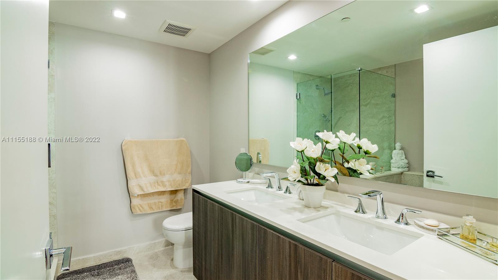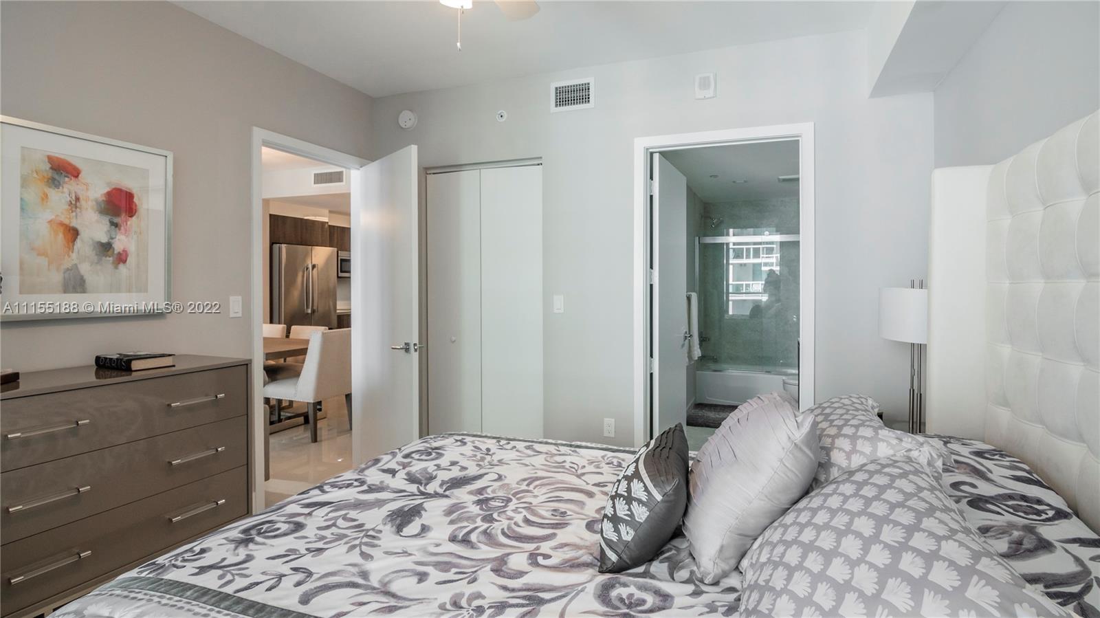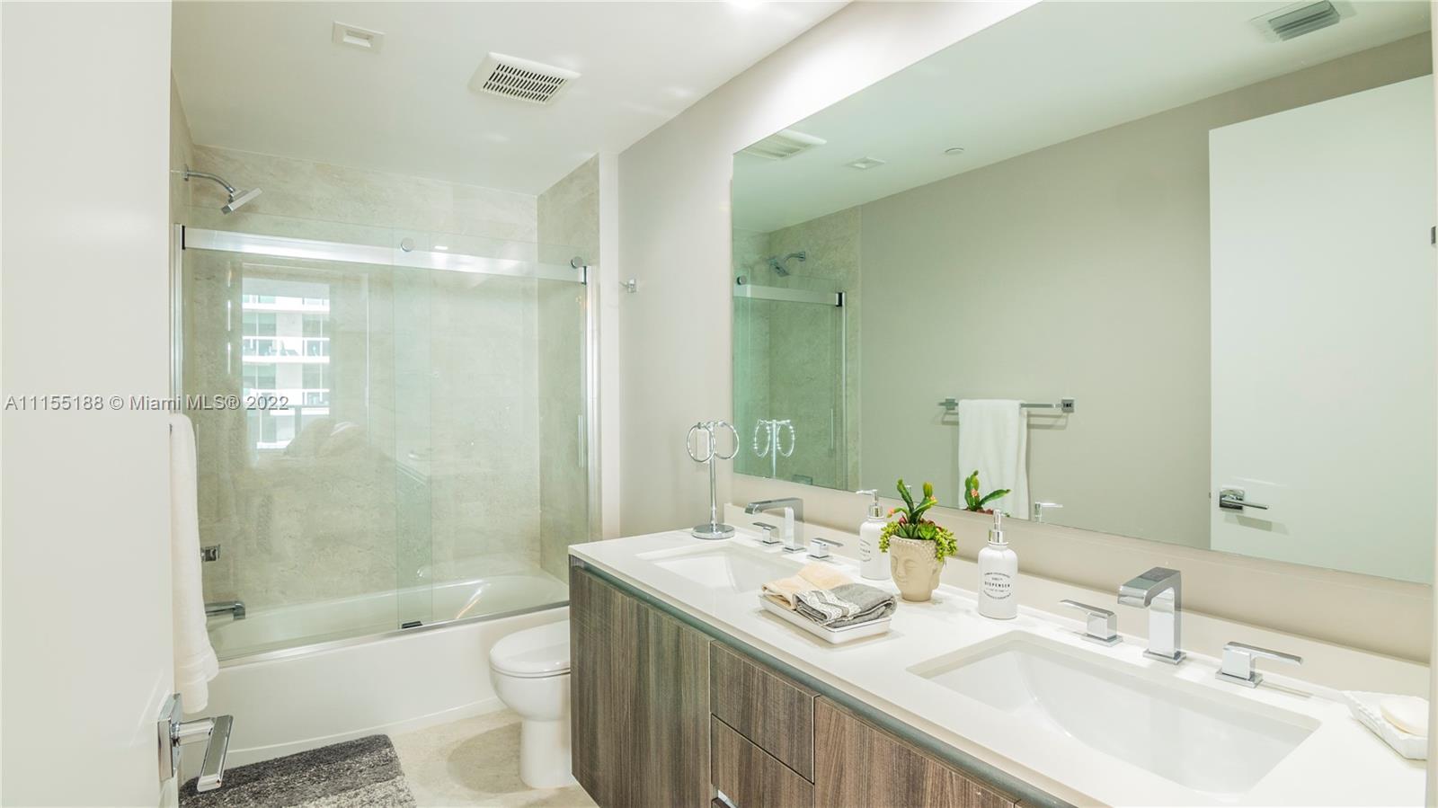 Beautiful 2 bedroom, 3 bathroom + den condo at the desired Aria on the Bay building in the heart of Miami's Edgewater neighborhood. This unit has never been lived in and features porcelain tile floors throughout, fully built out closets, automatic shades and much more. This great floor plan allows for two primary suites with large bathrooms and closets plus a den perfect for an office, nursery or exercise room. Aria on the Bay was finished in 2018 and has two lap pools, sauna, steam room, conference rooms, full service gym, movie theatre and kids room.