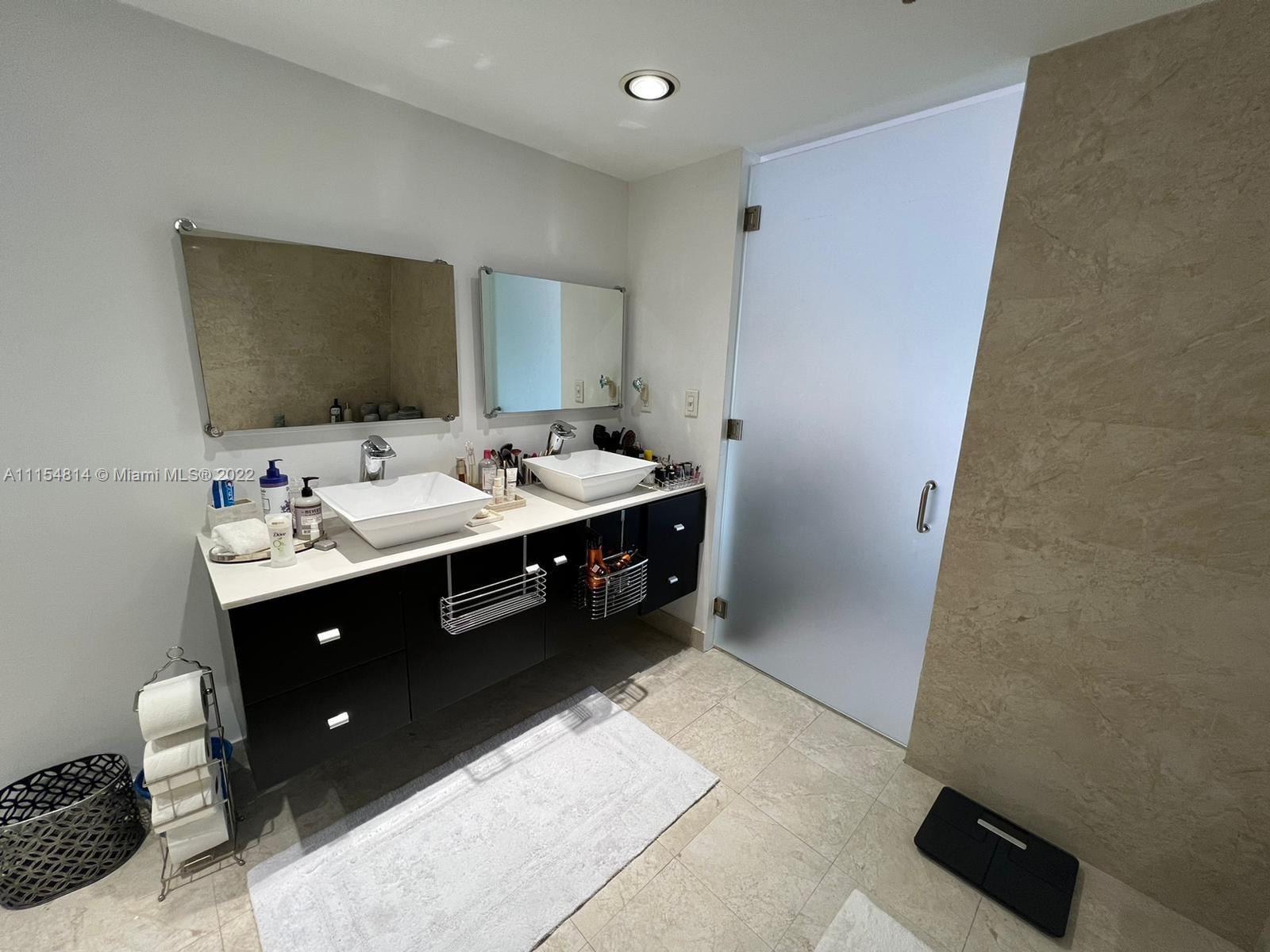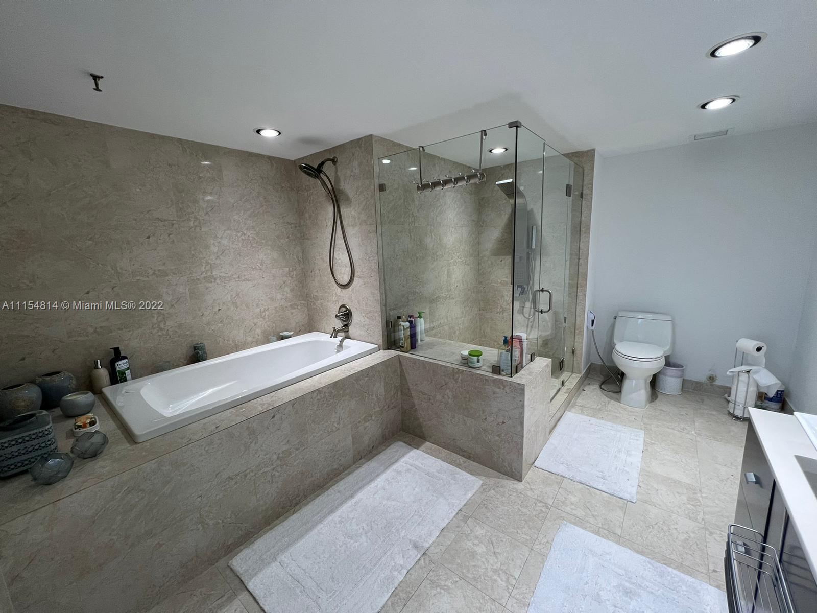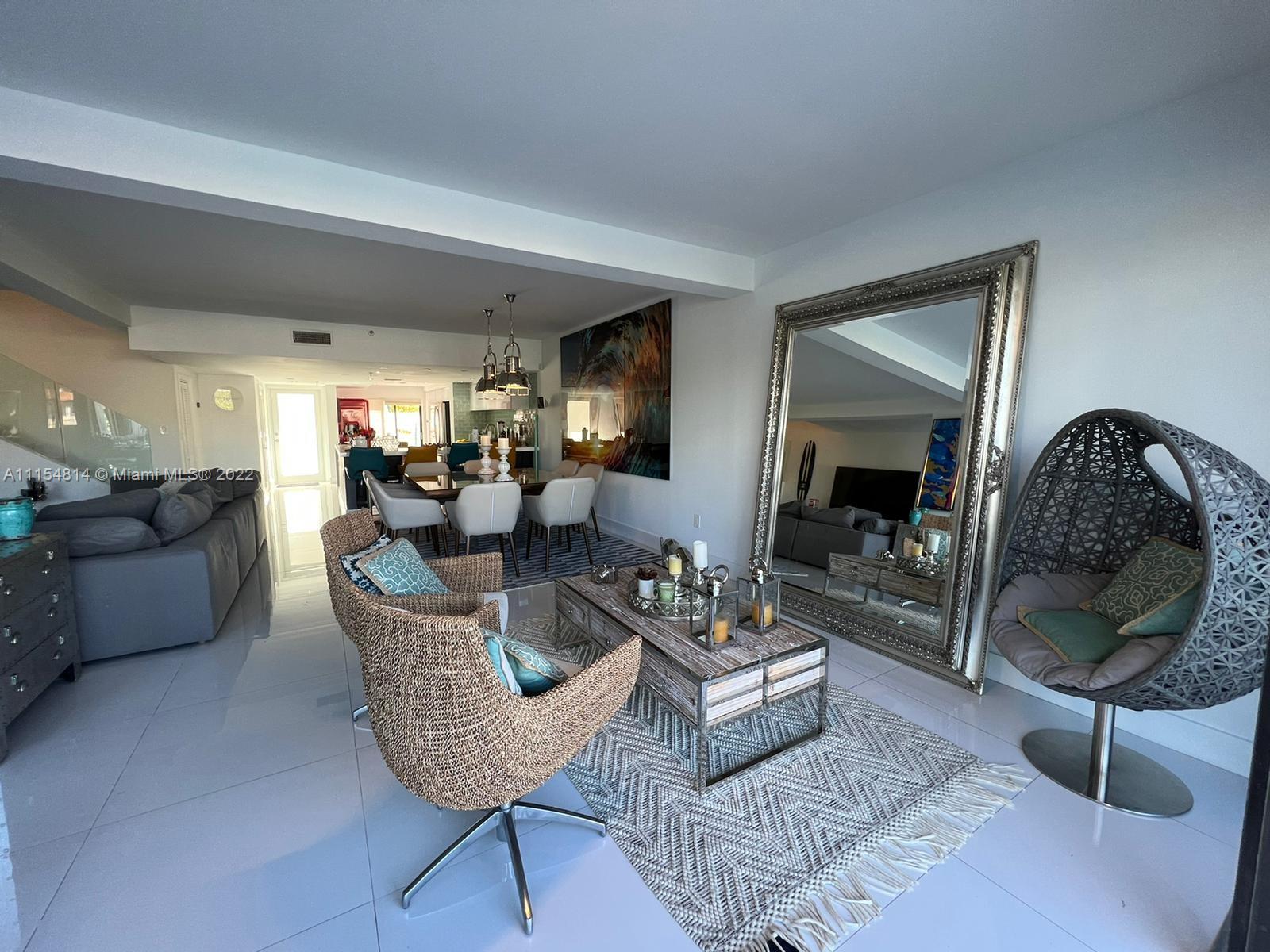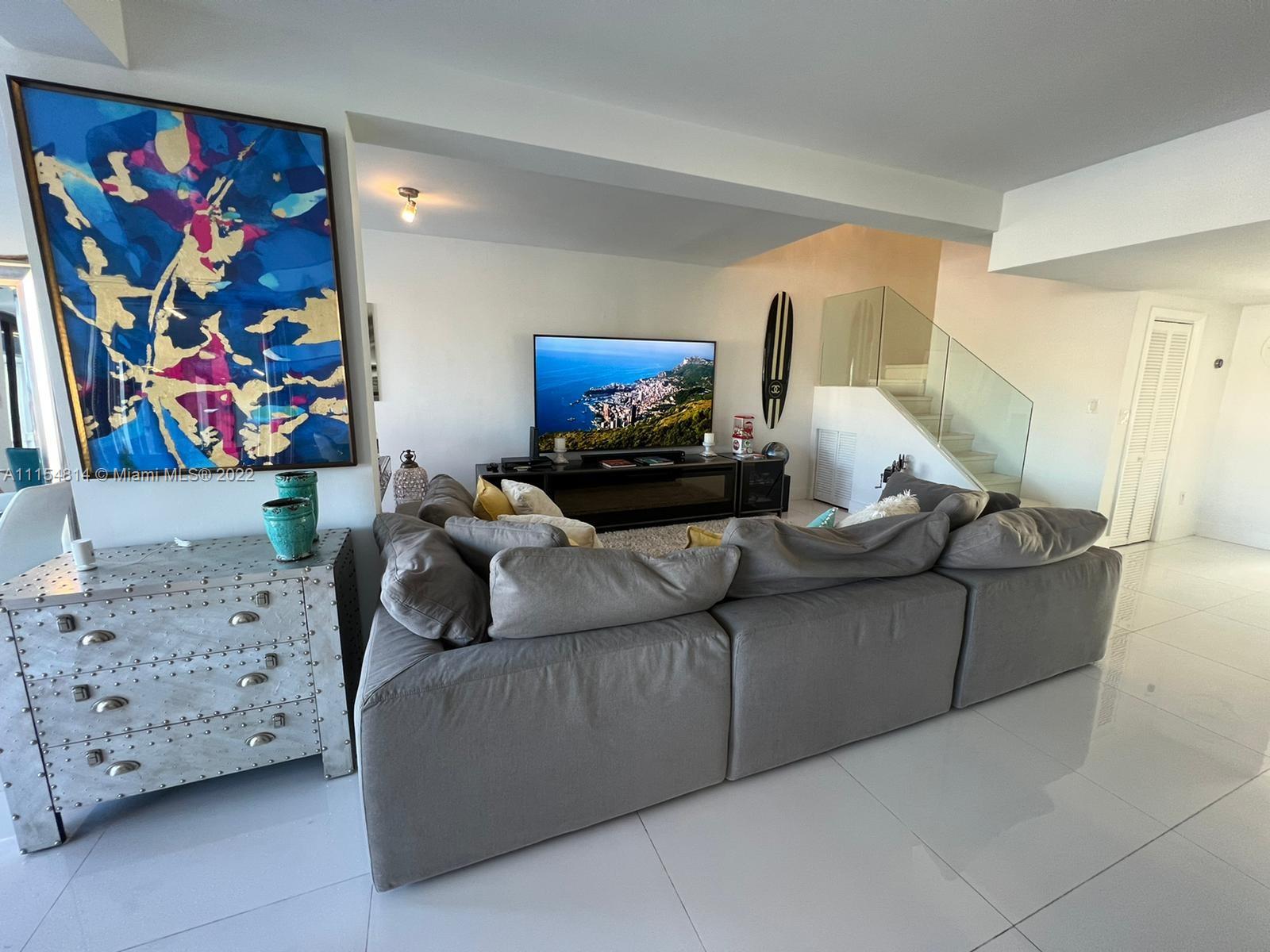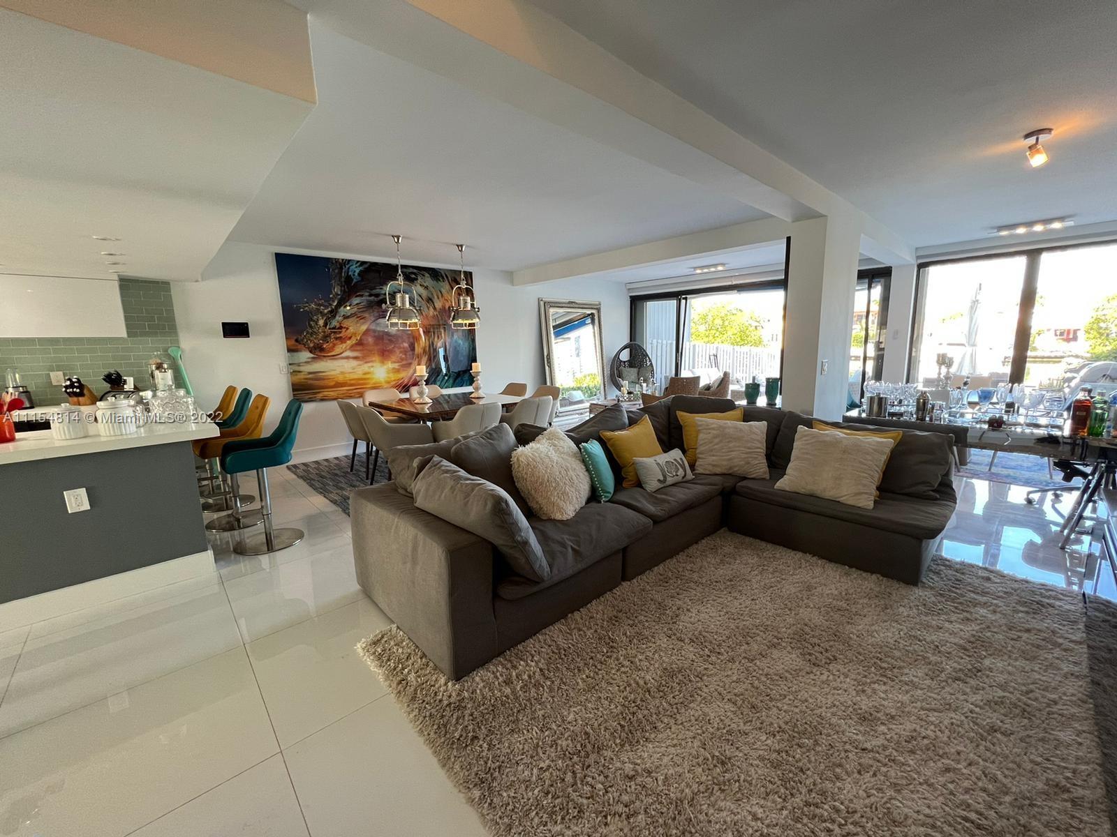 RARE OPPORTUNITY in the desired PoincianaIsland! Private Island 24-hour guard gated waterfront community. Recently upgraded custom two-story Marina level unit with back facing north. Gorgeous white porcelain tile floors throughout, white marble staircase and laminate wood in the bedrooms. White expanded kitchen with stainless steel appliances. Master suite overlooking water with walk-in closet and large master bathroom with separate SPA and shower. Sliding doors with automatic shades open to large marble patio to boat dock space behind unit. Great amenities - 4 tennis courts, basketball court, 2 heated pools, kids play area. Walk to the beach just across Collins Ave!! MUST SEE!!