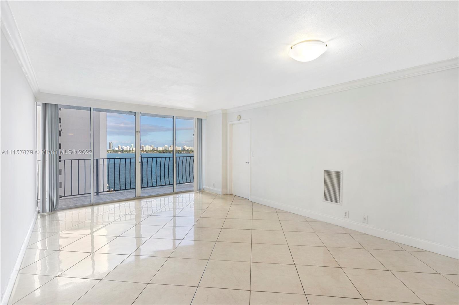 Breathtaking views of Biscayne Bay from every room! Desirable Spacious, Split floor plan 2 bed/2 bath updated residence, freshly painted with tile floors throughout, SS appliances and private balcony that runs the entire length of the unit. Unit has 2 parking spaces (Tandem) and can be rented right away. Easy to show, unit is Vacant. Perfect location close to the beach, Miami beach and Bal harbour.