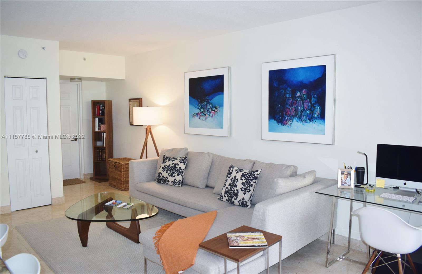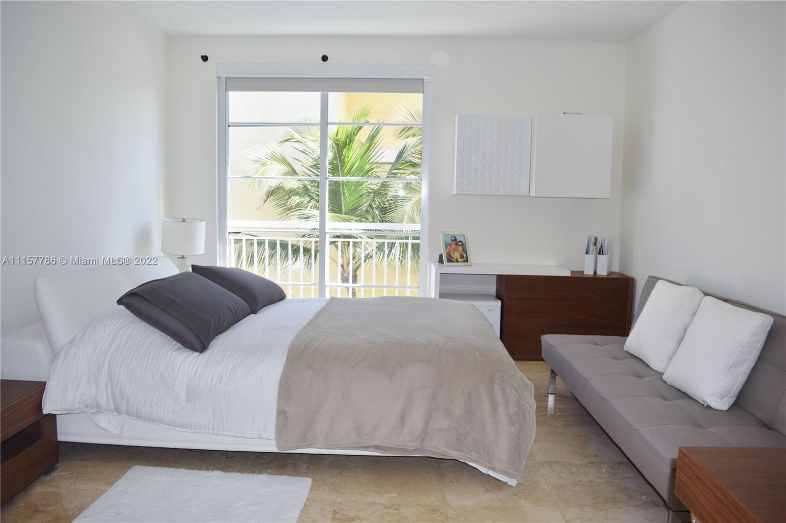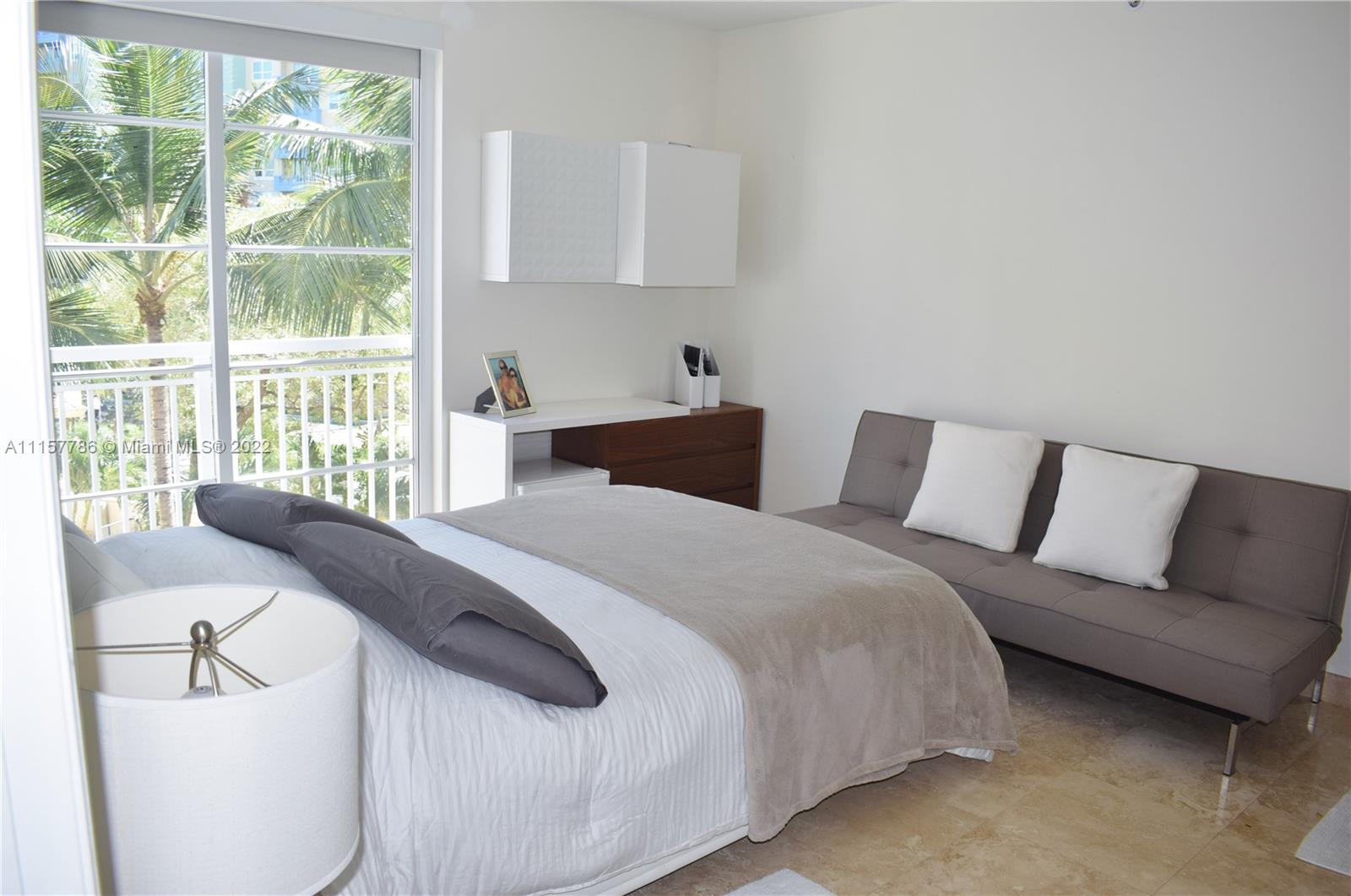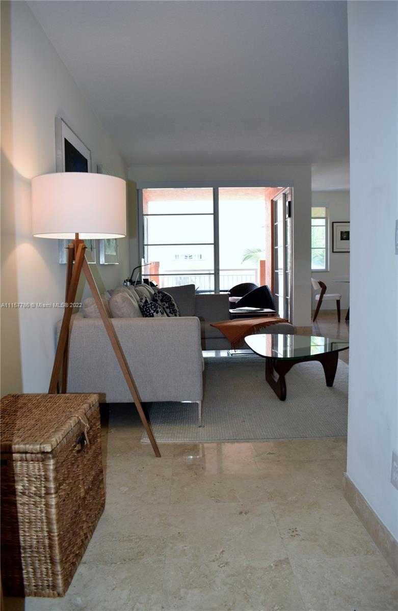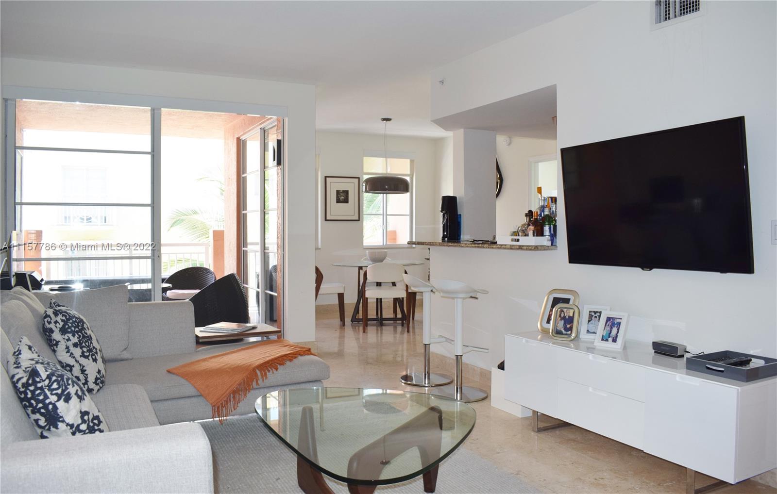 Enjoy the peaceful environment of this Mediterranean-style comm while living in the heart of the trendy South of Fifth neighborhood. This apartment is a 2 bedroom - 2 baths unit with views of the courtyard & city & boasts a gourmet kitchen, large terrace that's an extension of the living room, separate dining area, luxury bathrooms & beautiful marble floors that add elegance & style. The unit has 2 covered parking spaces. The community has 24 hr security, a fully equipped gym, a luxury, heated pool & is pet-friendly for owners & tenants.