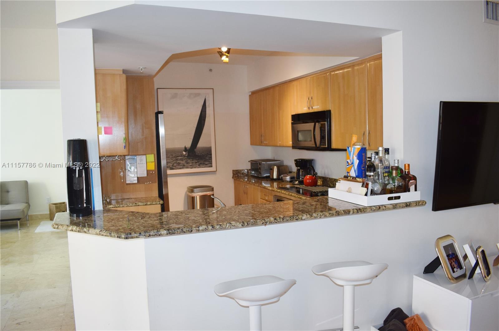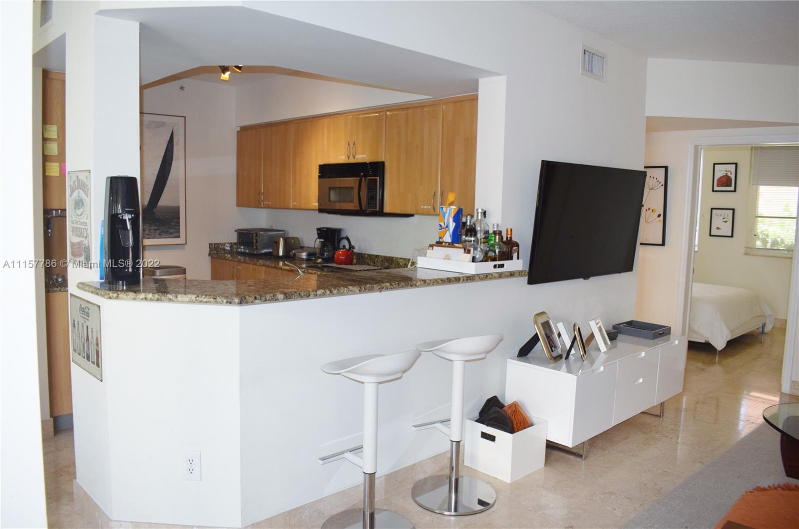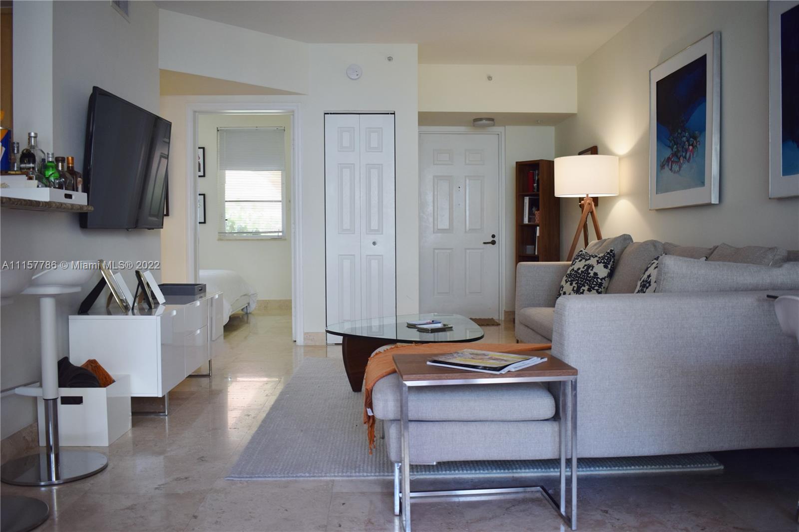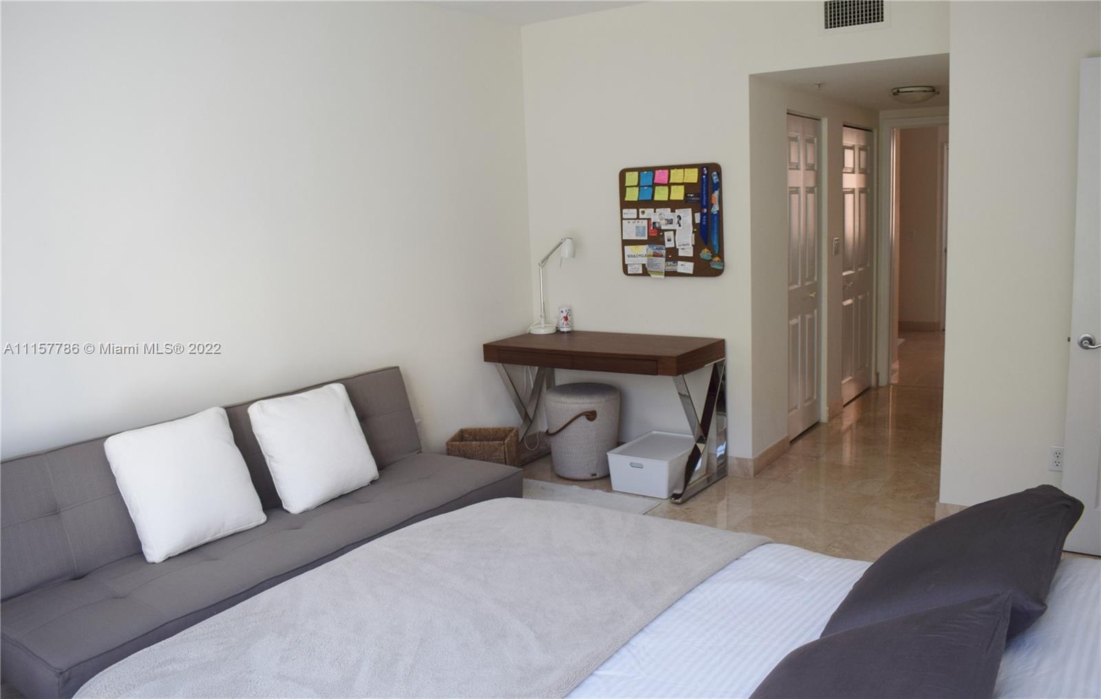 Enjoy the peaceful environment of this Mediterranean-style comm while living in the heart of the trendy South of Fifth neighborhood. This apartment is a 2 bedroom - 2 baths unit with views of the courtyard & city & boasts a gourmet kitchen, large terrace that's an extension of the living room, separate dining area, luxury bathrooms & beautiful marble floors that add elegance & style. The unit has 2 covered parking spaces. The community has 24 hr security, a fully equipped gym, a luxury, heated pool & is pet-friendly for owners & tenants.