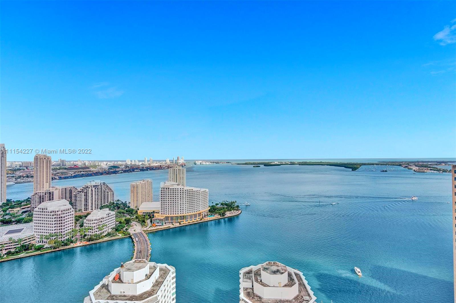 Breathtaking water views from the best corner unit: "10 line", rarely available on the Plaza on high floors! Features include wood-like porcelain floors, floor-to-ceiling glass windows, wrap-around terraces, and chef kitchen w/ss appliances. Great floor "split" plan. The Plaza is in the heart of Brickell, Miami's financial, just two blocks from Brickell City Center and world-class shopping and dining. Building amenities include a resort-style pool area with two large infinity pools, gym, steam room, spa, business center, party room, 24 hours concierge, valet, and much more! Steps to all city activities, shopping, and dining. NOTE: If a Realtor represents the client, it must accompany the showing.