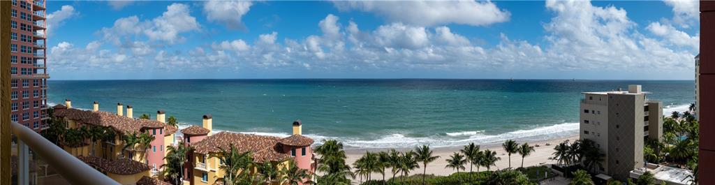 Semi-private elevator opens to a private foyer for this 2/2.5 + den condo with unobstructed views for miles of the Atlantic ocean and pool from the main living areas and views of the intracoastal from the Master and 2nd bedroom. Galley style kitchen with Sub Zero fridge. Spacious Master bedroom with seating area and dual walk-in closets & master bath with dual sinks, and separate tub & shower. 2nd bedroom has a walk in closet and ensuite bath. 24 hr guard gated security, valet and concierge desk. 2 story gym, sauna, tennis, racquetball, club & party rooms, 2 pools and private beachfront access for a 5 star resort style living experience in Fort Lauderdale, near the Galleria Mall and the NE 33rd Street art district. Numerous waterfront intracoastal and ocean dining experiences nearby.