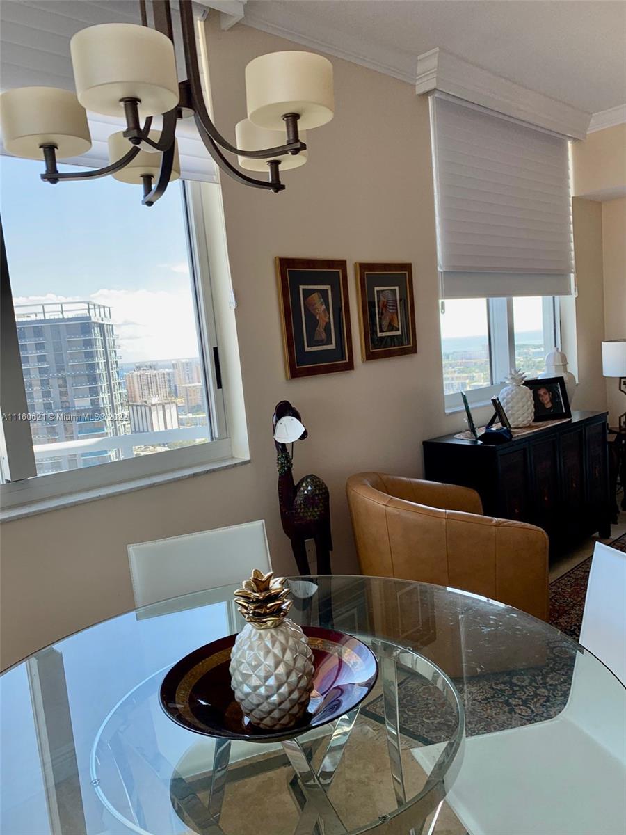 Largest corner 1751 square ft Penthouse 11 foot ceilings, featuring 3 balconies with gorgeous sunset , City skyline and Golf Course views . *2 deeded parking spaces* , 3 bedrooms plus 3.5 baths . Unit has carpet in the bedrooms, Kitchen has been renovated w/custom designed cabinetry and custom built units in bedrooms. The building offers 24 hours security and valet parking and great amenities: heated pool, Jacuzzi, Gym, party room, Sauna, Steam Room, Billiard Room, Tennis Courts, Theater Room and more. Duo Condominium is within walking distance to: Restaurants, Grocery Stores, Medical Offices, major shopping stores and much more. Minutes to Beach. Pet friendly building. Assessment has been paid by seller.