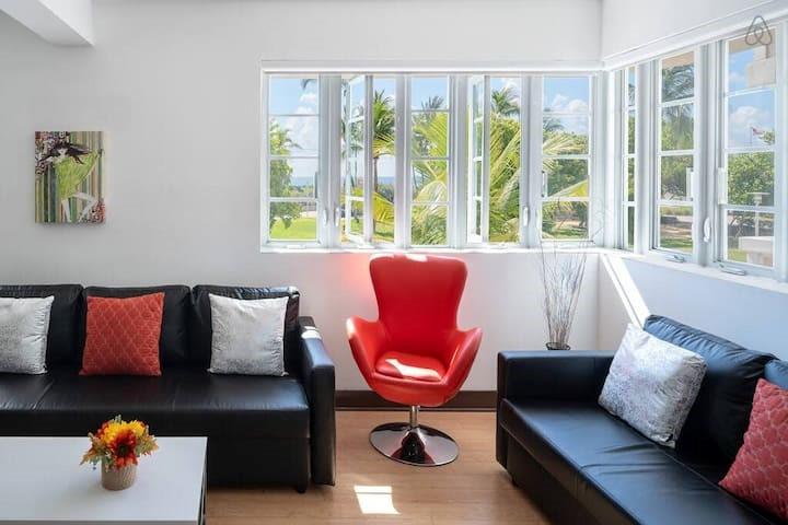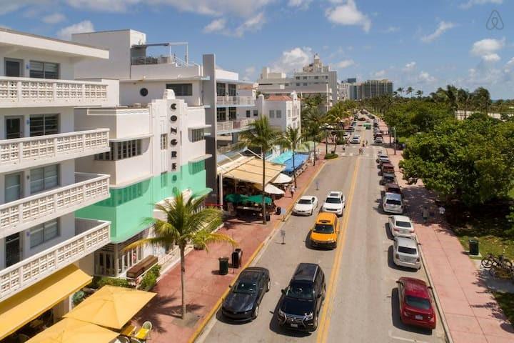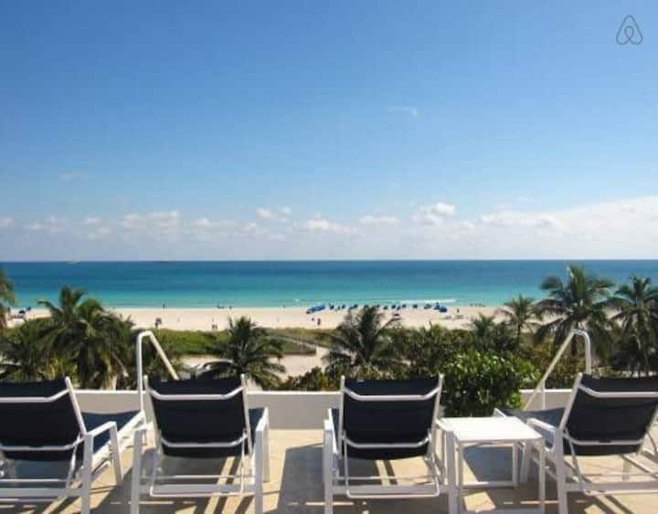 Amazing oceanfront 2 bedroom apartment with a great view of Lummus Park, Beach, and Ocean and Ocean Drive. It is located in a prime spot, right in the heart of South Beach. 2021 was rented approximately $95,000. This apartment rents short term AIR BnB with license