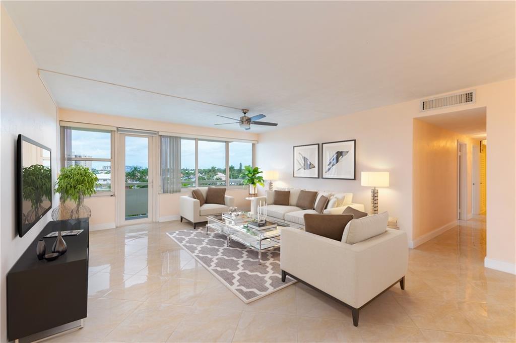 Absolutely stunning unobstructed Intracoastal views from every room! Located in the most coveted stack in the Coral Ridge Towers complex, apartment 501 has the kind of views you dream about. Some photos have been virtually staged for marketing purposes. This spacious 1400 sq ft 3 bedroom 2 bathroom features central air conditioning, hurricane impact windows / door, walk in closets and incredible views from every room. Located on a barrier island between the ocean & intracoastal waterway, walking distance to the beach, restaurants, grocery, post office & water taxi. Great amenities including a resort style 30 x 60 heated pool and picturesque garden area on the Intracoastal. Association states one buyer must be 55 plus & no pets or rentals.