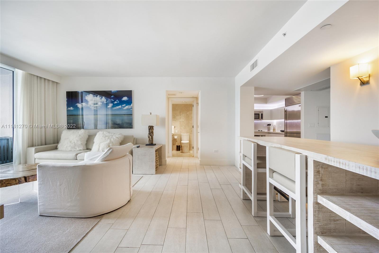 1 Hotel & Homes condos is in world famous South Beach on the Atlantic Ocean. Here you will experience a world-class hotel, luxury residences, a private beach club and five-star restaurants. Each condo at 1 Hotel and Homes South Beach is equipped with Italkraft stainless steel appliances, quartz and travertine counters and tiles, and Brazilian porcelain flooring on this (soon-to-be) LEED-certified property. The world-class amenities at 1 Hotel and Homes South Beach include four swimming pools including a rooftop pool and restaurant, a 14,000 square foot fitness center, technical support, eco-friendly housekeeping services, in-residence massages and personal training. Unit 1445 is a beautiful corner unit, two bedrooms two bathrooms facing Miami Skyline.