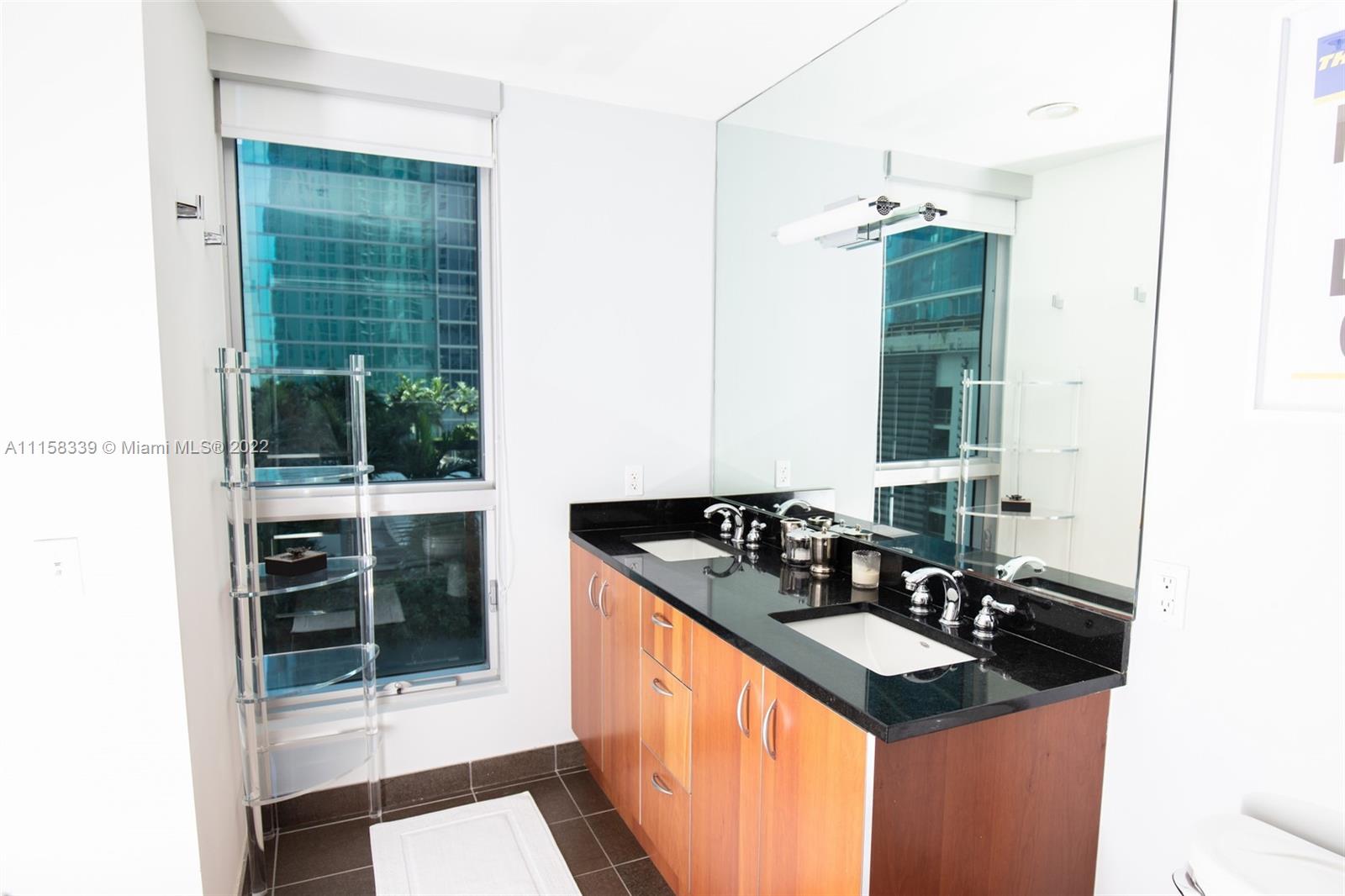 Super clean 2 story unit, 2 bed/2 1/2 bath, split level, high ceilings, with lots of natural light and a balcony with city and partial water view! Granite counter tops, wood cabinets, stainless steel appliances, and lots of storage. Pool, waterfront gym, 24/7 valet and doorman, 2 COVERED PARKING SPACES + Storage unit! Close to metro mover, Brickell Ave, shops and restaurants. Cable and internet included in maintenance. Unit is vacant and available turnkey. Minimum lease 6 months, 2 times a year. No special assessment.