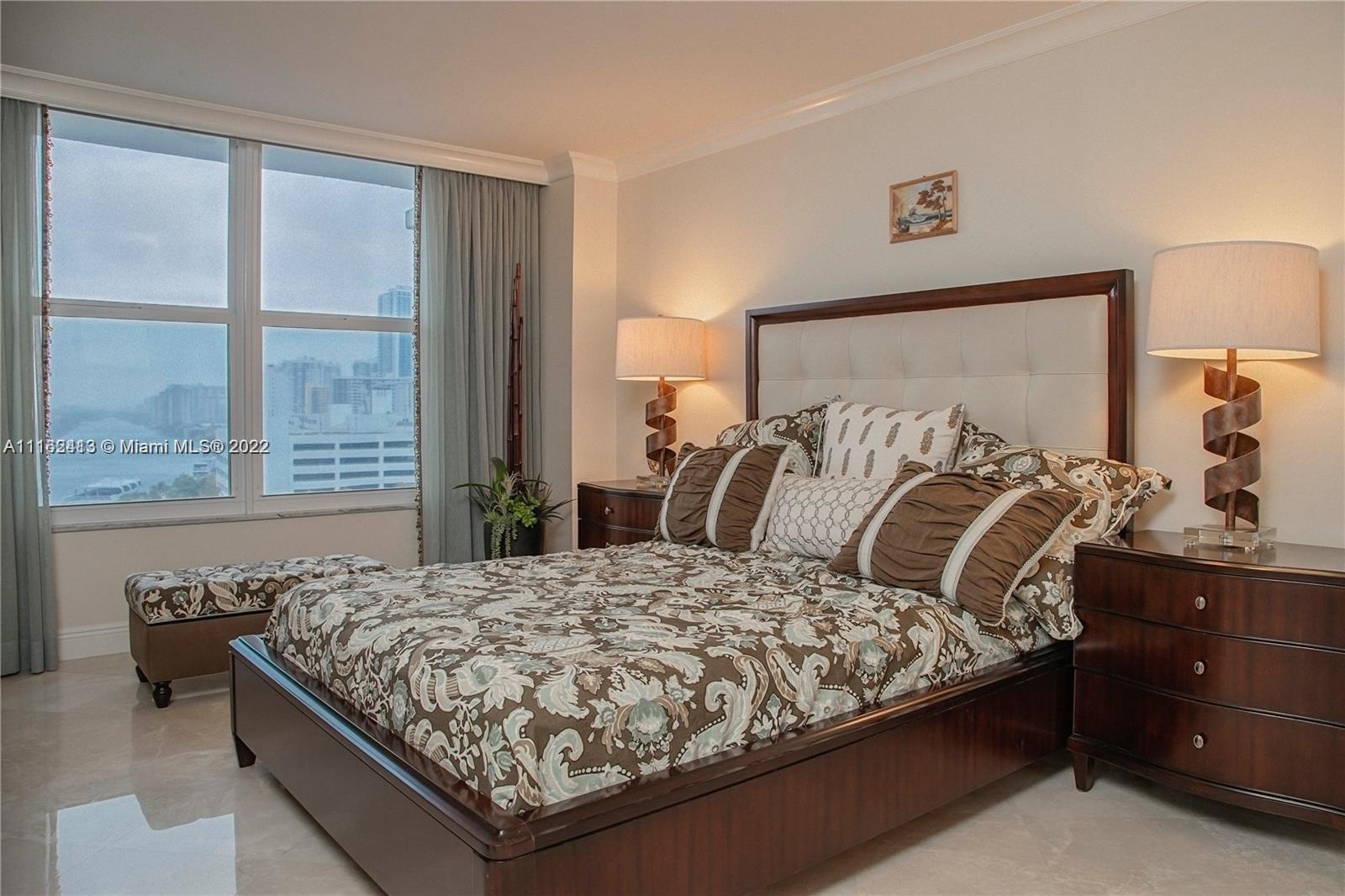 Stunning condo and substantially remodeled facing North overlooking the Intracoastal and Skyline. Open concept kitchen-stainless steel appliances-Granite counter tops, IMPACT windows and doors, electric shades in every window, closet cabinetry, marble floors throughout. Garage parking - extra storage- great community. Price to sell quick. Walk to shopping, Diplomat, Crowne Plaza.