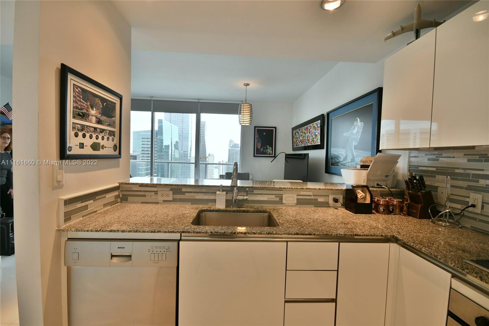 Brickell studio with amazing city and even bay views. Updated kitchen cabinets and backsplash, flooring, and partial bathroom to name a few. Luxury building with pool, hot tub, exercise room, conference room, valet parking, onsite management and more. In the heart of Brickell so just take the elvator down and walk to shopping, cafes, and restaurants.