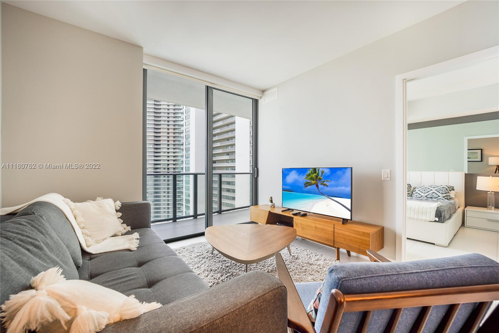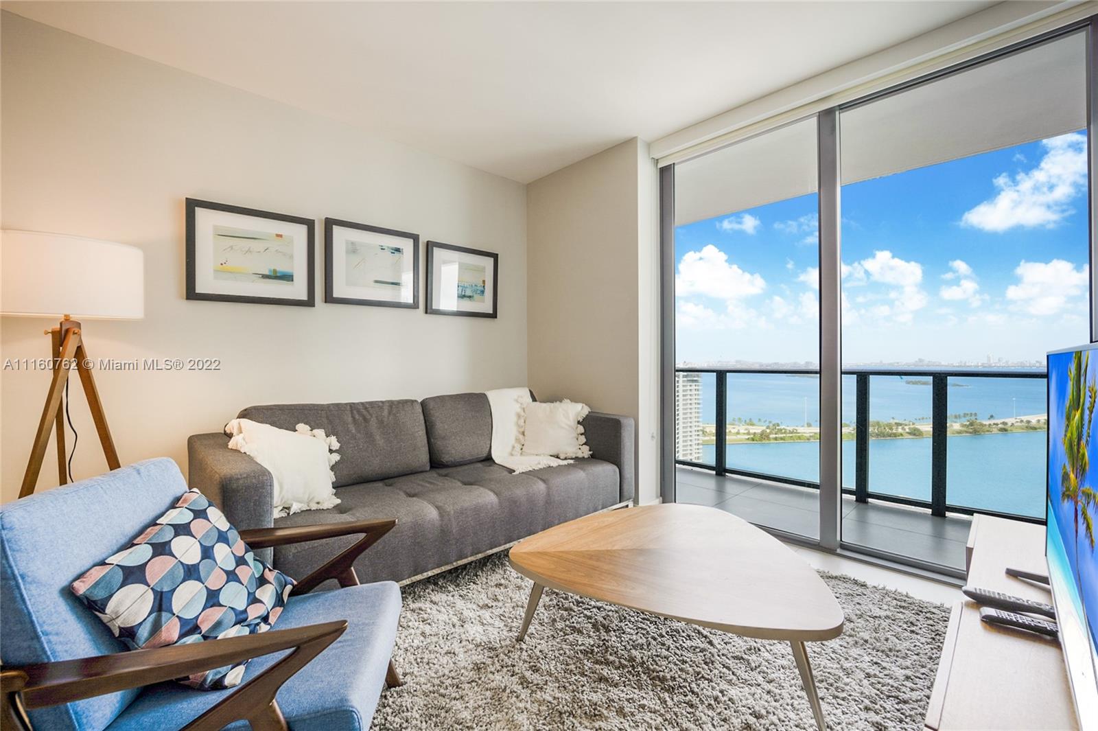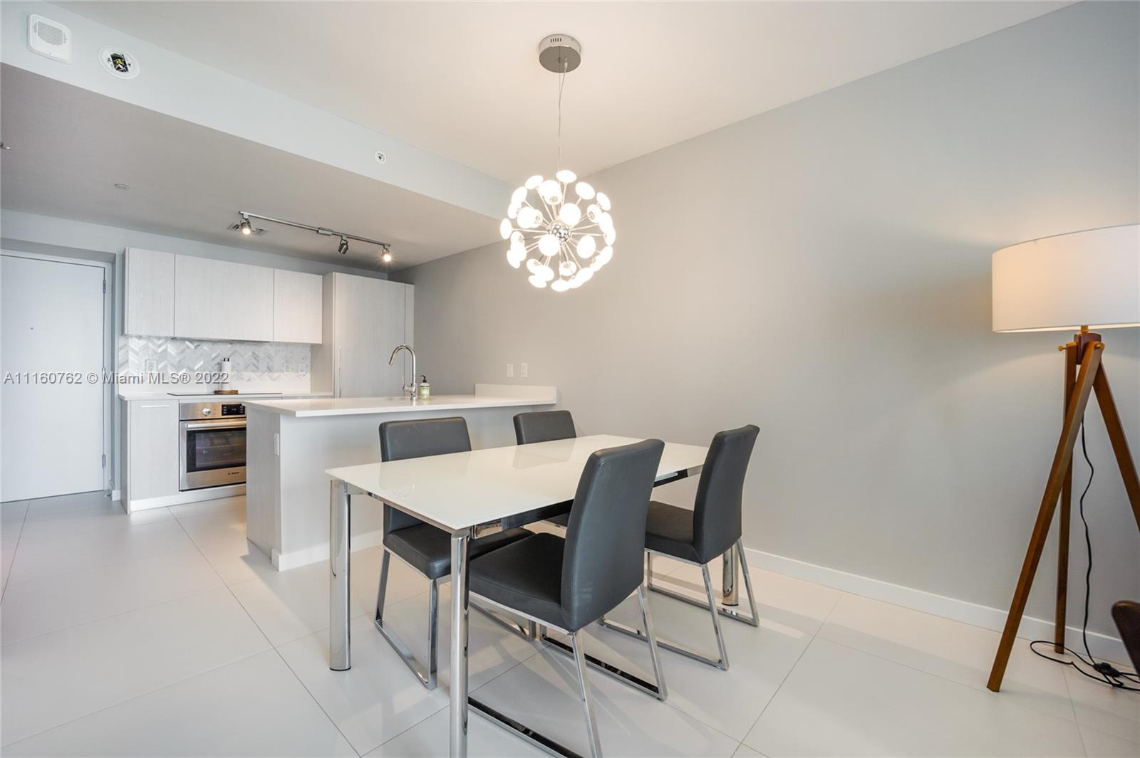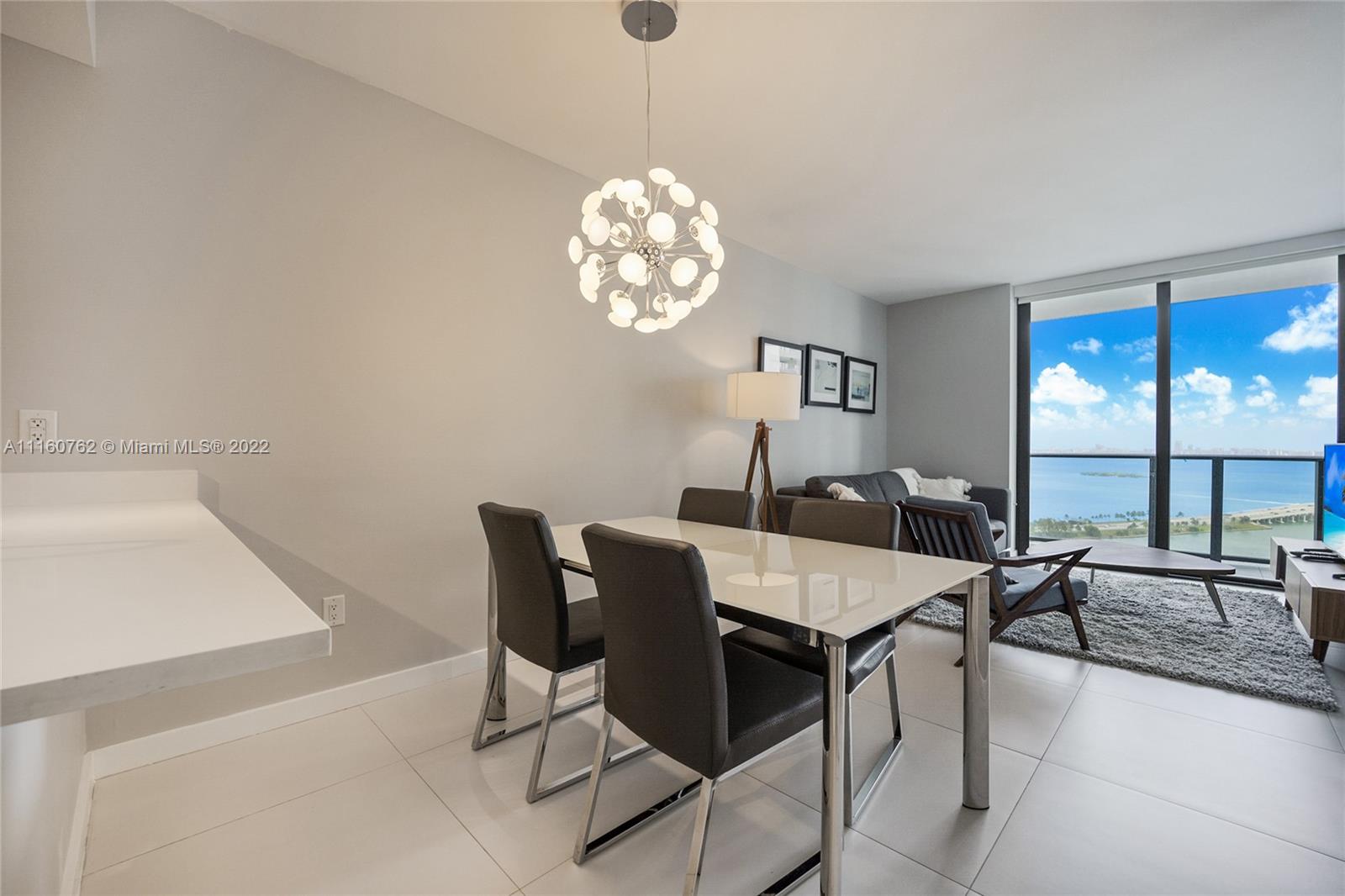 The BEST fully furnished apartment with an amazing water view to South Beach from 27th floor, is ready to move in! Brand new Building at Paraiso Bayviews with direct bay and water view with 1 bedroom, 1 Den, 1.5 Baths, walking closet, white tile floor, washer and dryer in the unit. Master suite with large glass enclosed shower. Italian Design Kitchen with bosh appliances, full services building with rooftop pool at 46th floor, second pool at 5th floor plus, spa, sauna, state of art gym, kids' room, social room with billiard and projection tv screen. One assigned parking space, number 3088 and valet. Huge balcony. Has many shops and restaurants within walking distance.