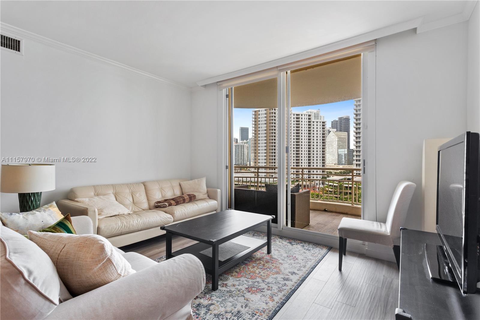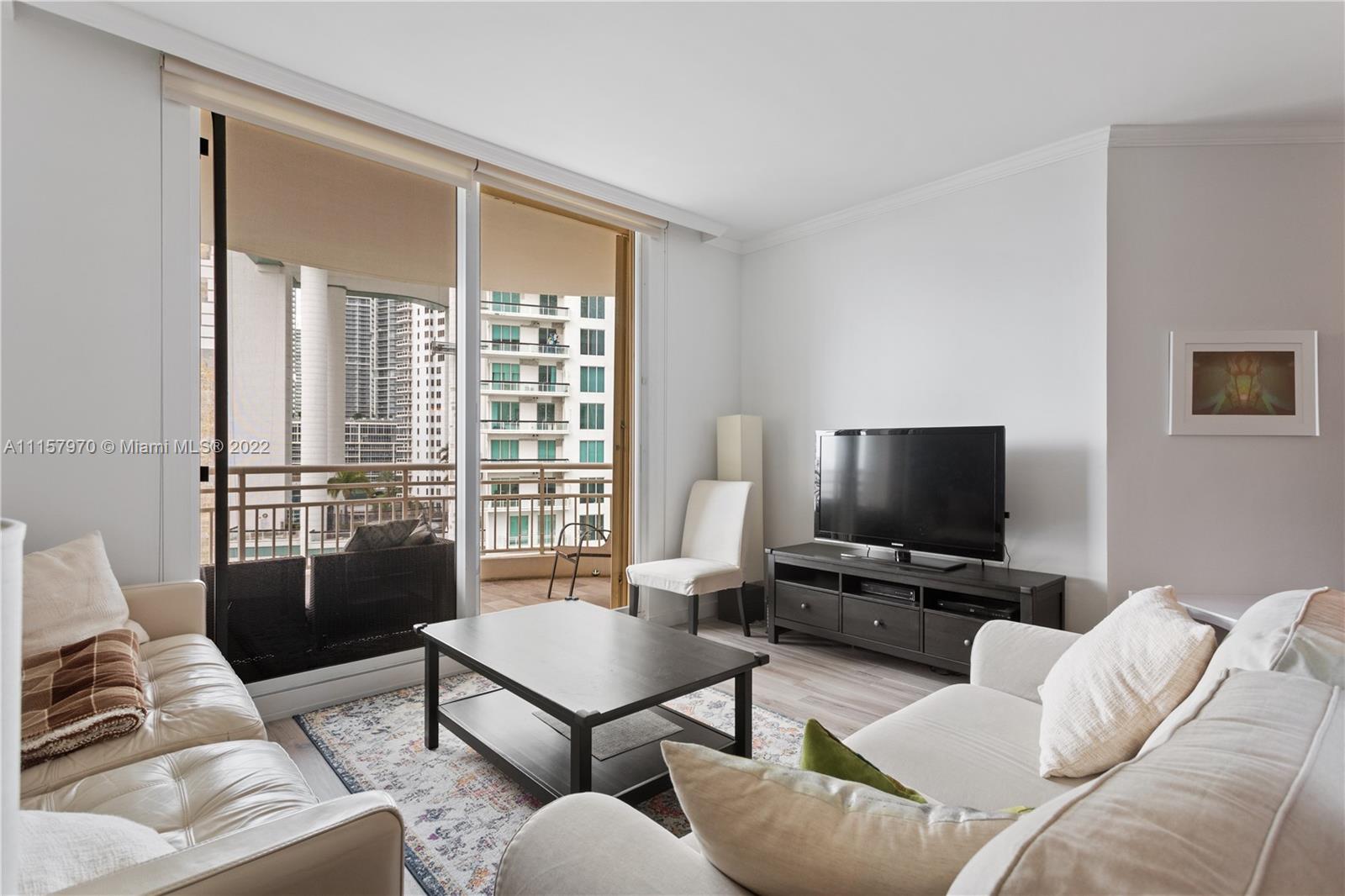 Gorgeous two bedroom, two and a half bathroom unit at One Tequesta Point. Unit has tons of natural light and high ceilings. Split floor plan. Remodeled Kitchen and stainless steel appliances, new tile floor throughout. Spacious living and dining area great for entertaining. Great size master bedroom with one of a kind walk in closet and nice bathroom. Second bedroom en-suite. Balcony offers a unique view of the Miami skyline and partial view of river. Building amenities include: pool, exercise room, squash and racquetball courts, barbecue area and business center. Additionally, Brickell Key offers recreational parks, a 1 mile strolling path that surrounds the island, and its high-end restaurants and local market.