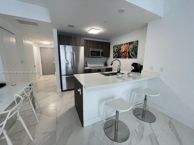 Amazing unit at the Aria on the Bay, a luxury high-rise development, modern furnished 1 bed and 1.5 bath Tile floors, custom closets interiors, kitchen with European cabinets and top of the line appliances, oversize balcony w/city and bay views, Full resort-style amenities like sunrise/sunset pools, a hot tub overlooking Biscayne Bay, indoor/outdoor social room, gym and yoga studio, game room and library, business center. located in the heart of the Art and Entertainment District, close to parks, restaurants, shops and many activities.
