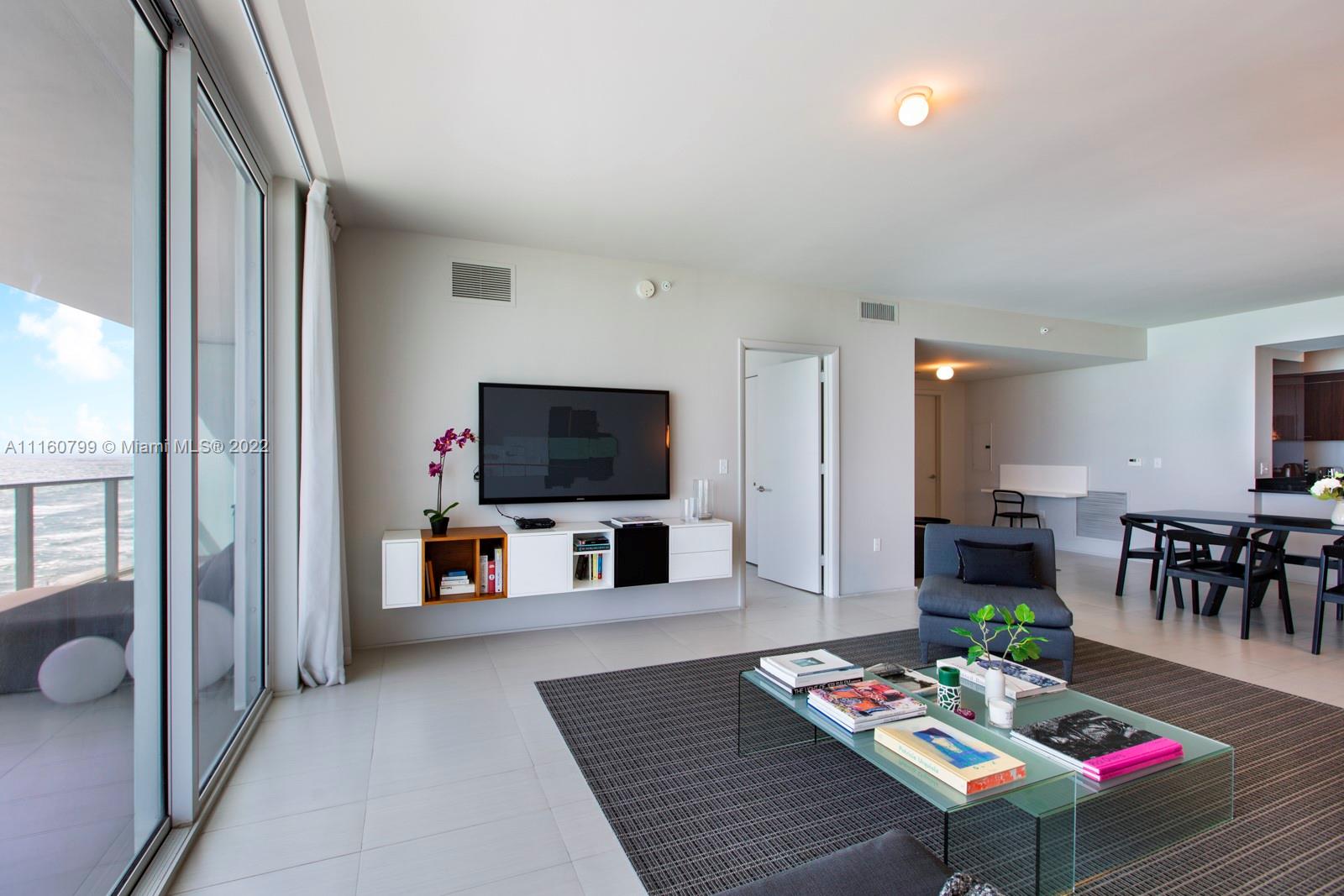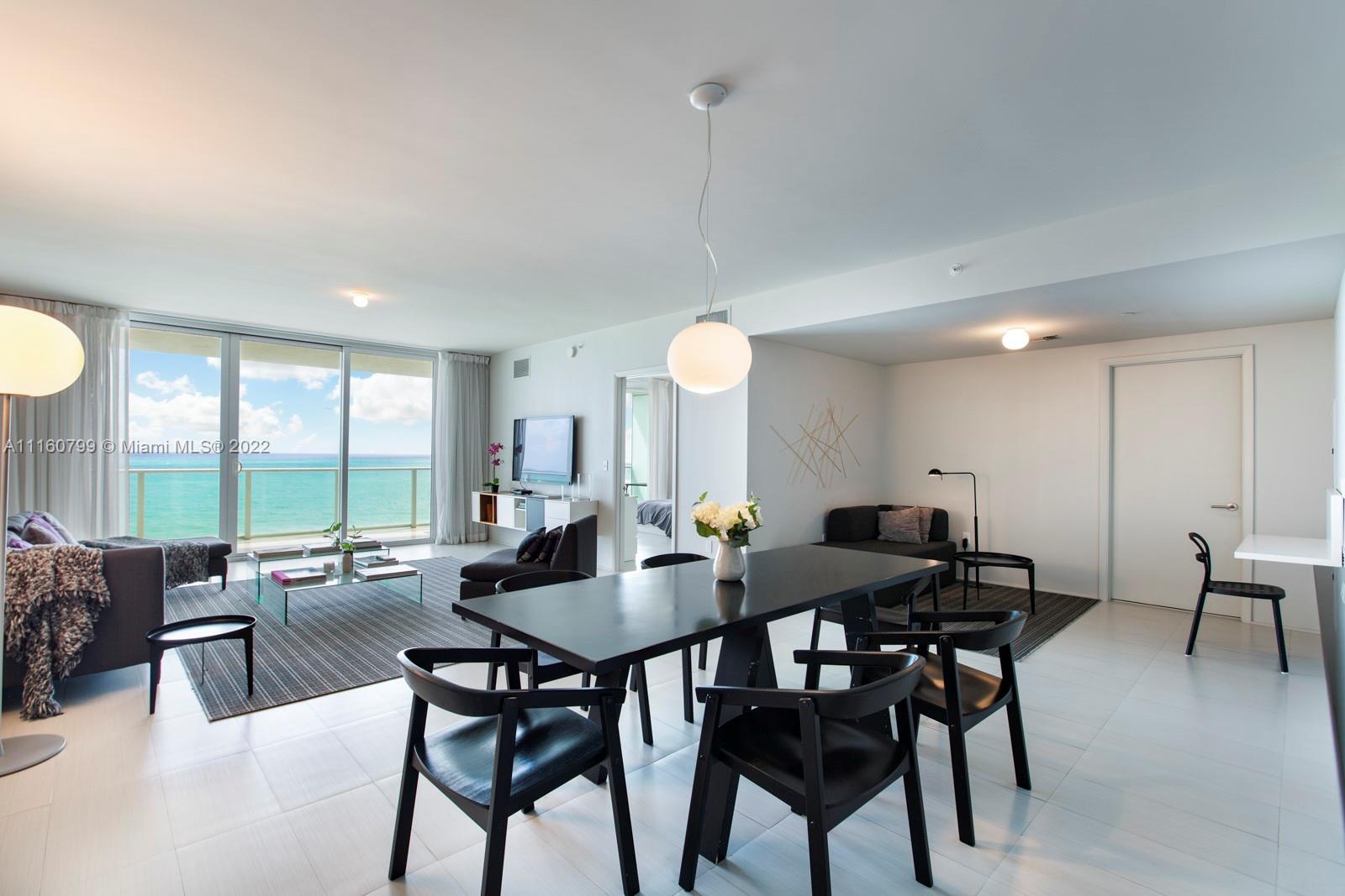 This ocean front residence at Apogee Beach Hollywood features two bedrooms plus den and three full bathrooms with incredible views and generous floor plan. Apogee Beach is a boutique building with only 49 residences and sits over 240 linear feet of pristine beach. Floor to celling windows, all the rooms have ocean views and access to the terrace. Italian cabinetry kitchen with high end appliances. Two parking spaces. Amenities include a 240-foot oceanfront, pool, fitness center, club room, theater, and kid’s lounge and more.