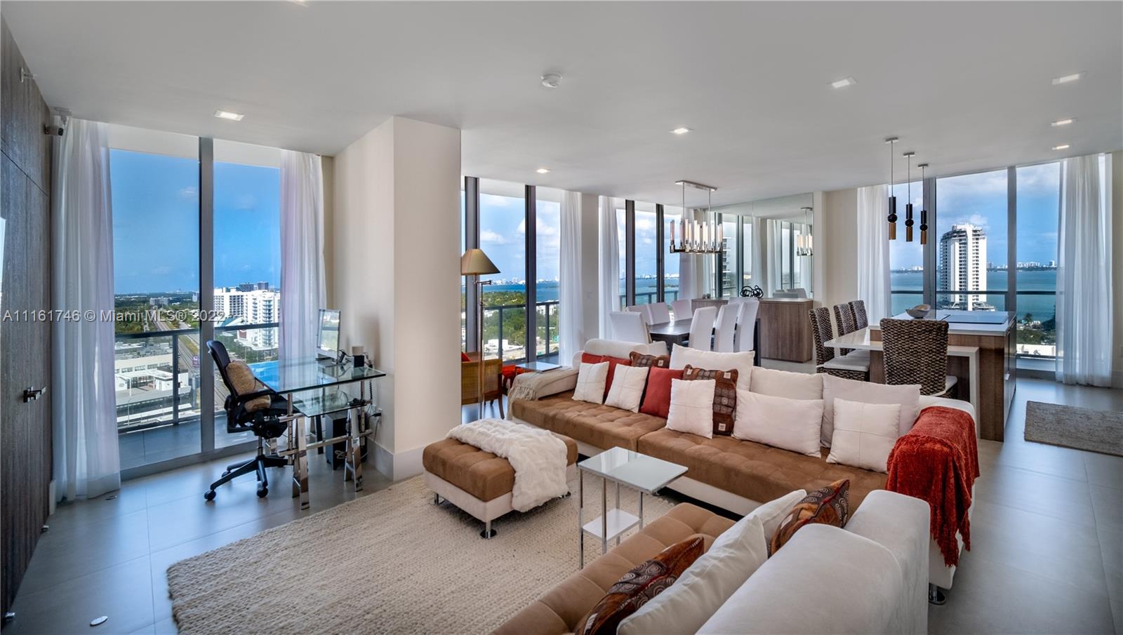 Paradise awaits at 2Midtown. Perched on the 17th floor is this stunning NE corner residence offering breathtaking views of the city and Biscayne Bay. This former 3 bedroom has been completely renovated and reconfigured with style into a large 2 bed + 2.5 bath residence with spacious living area. Designer kitchen features Bosch appliances and Quartz countertops and the expansive wraparound terrace boasts seamless indoor/outdoor living. Additional features include smart-home access, motorized shades, and a 4-camera security system. Building amenities include fitness center with views of the bay, heated pool, 3 dipping pools, kids playground, and outdoor yoga/lounging area. Surrounded by Miami’s ultra-luxury shops, restaurants, and nightlife, 2Midtown sets the bar for lifestyle and location.