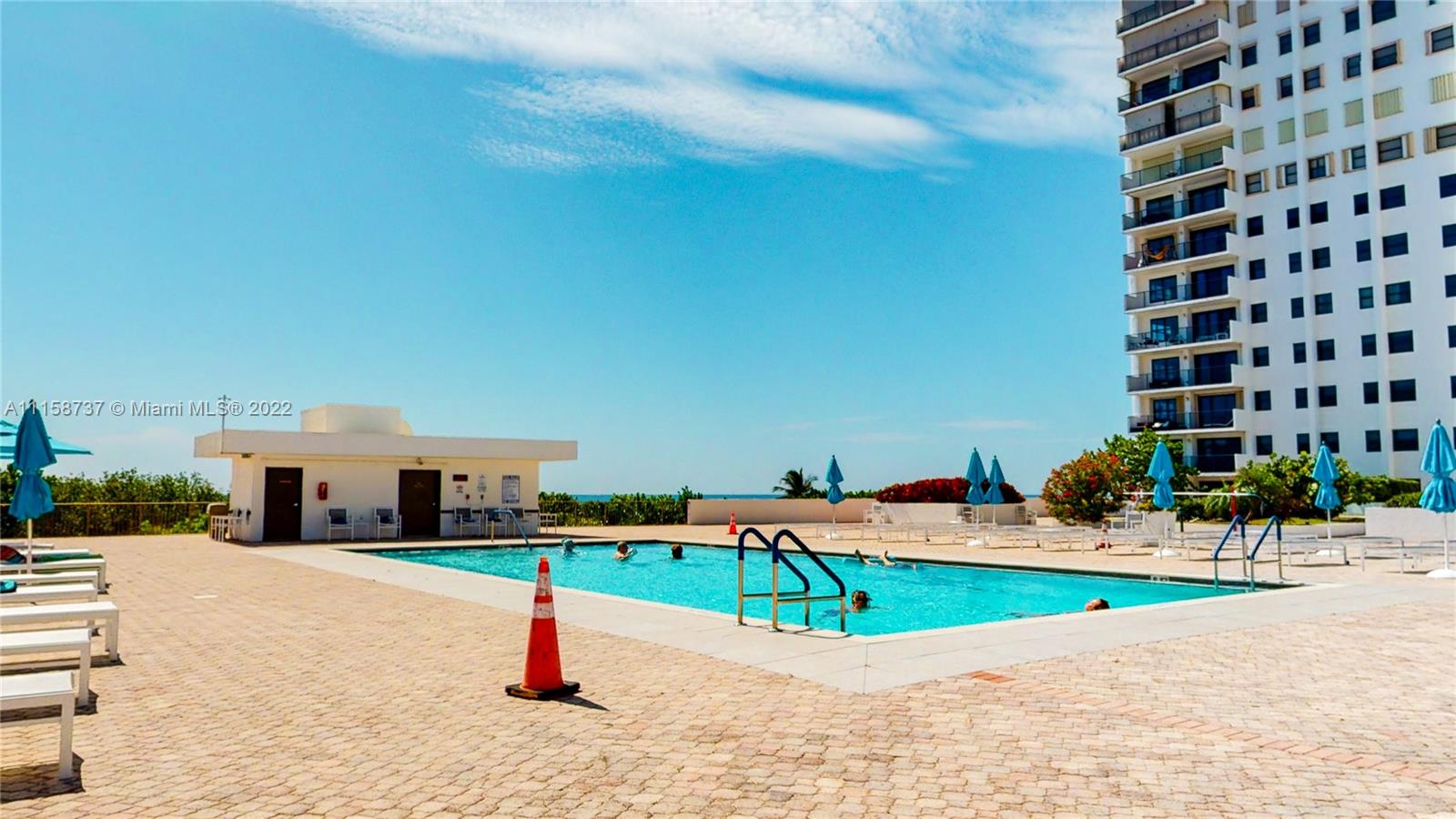 Spectacular remodeled 1 bed/1 bath apartment with intracoastal view. Stained concrete floors, large living area open to breakfast nook & built-in storage benches, Kitchen opened countertop area for entertaining, dining, or working from home. S/S E-Oven & Refrigerator. Master bedroom was converted for special needs as bedroom, closet, study, or sitting area. Master bath+ modern shower, floating cabinets. Laundry area with door. Designer taste upgrades. Located in one of the most desirable buildings by the beach, steps from Famous Hollywood Broadwalk with many restaurants. Enjoy the amenities : 2 Heated pools, 2 tennis courts, gym, game room & much more!. Cable Tv, Internet/WiFi, Landscaping/Lawn Maintenance, Sewer, Trash Removal, Water included in maintenance. Click on Virtual Tour